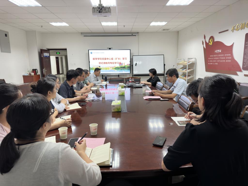 為深入學(xué)習(xí)黨的二十大精神,7月3日,數(shù)學(xué)與數(shù)據(jù)科學(xué)學(xué)院黨委在理科樓423會(huì)議室召開(kāi)理論中心組(擴(kuò)大)學(xué)習(xí)暨紀(jì)律教育專(zhuān)題會(huì)議,特邀馬克思主義學(xué)院副院長(zhǎng)郗芙蓉講授“從黨章看政黨本色——黨的二十大黨章修改解讀”主題黨課。數(shù)學(xué)學(xué)院班子成員、黨委委員、紀(jì)委委員、各系主任、全體黨支部書(shū)記參加會(huì)議,會(huì)議由學(xué)院黨委委員白云霄主持。