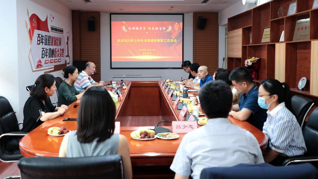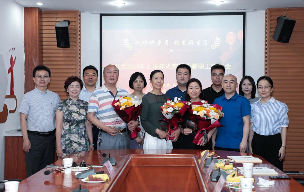 7月7日,機(jī)關(guān)黨委舉辦2023年上半年光榮退休教職工歡送會(huì),機(jī)關(guān)黨委書記王幃、上半年退休的劉冉夏、張拓磊、李君三位教職工、所在部門的有關(guān)負(fù)責(zé)人和機(jī)關(guān)工會(huì)委員參加了歡送會(huì)。歡送會(huì)由機(jī)關(guān)黨委副書記、機(jī)關(guān)工會(huì)主席雷如主持。