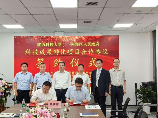 7月10日,我校兩項(xiàng)科技成果轉(zhuǎn)化項(xiàng)目與漢中市南鄭區(qū)合作簽約儀式在漢中市政府駐西安辦事處舉行。我校副校長(zhǎng)黃劍鋒出席并講話(huà),漢中市副市長(zhǎng)吳維強(qiáng)、我校前沿院常務(wù)副院長(zhǎng)強(qiáng)濤濤、學(xué)科領(lǐng)軍人才許并社等一行20余人參加簽約儀式。
