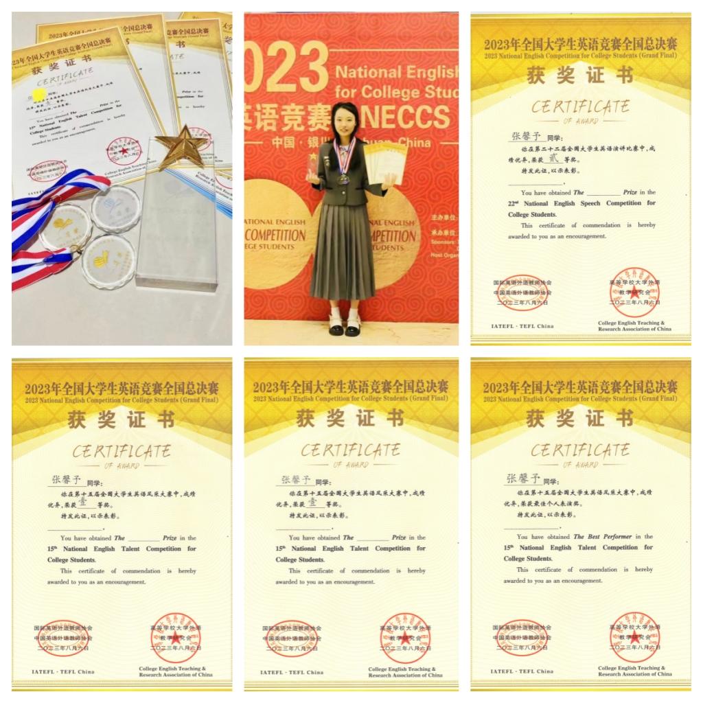 近日,2023年全國大學生英語競賽(NEGCS)全國總決賽在寧夏回族自治區(qū)銀川市落下帷幕。阿爾斯特學院學生張馨予共斬獲C類(非英語專業(yè))全國特等獎1項、英語風采大賽一等獎2項、英語演講比賽二等獎1項,刷新了學院在此項賽事的最好成績。