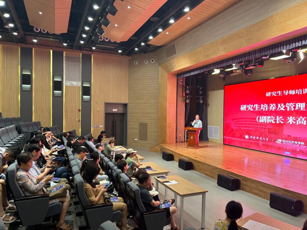 為進一步加強設計與藝術學院(絲路文化與傳播學院)研究生導師隊伍建設,提高研究生導師能力,切實保障研究生培養(yǎng)質量,8月31日在人文樓小劇場組織開展了2023年研究生導師培訓會,學院領導班子及全體研究生導師到會參加,會議由學院副院長米高峰主持。