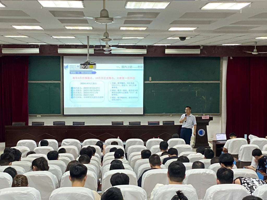 薛朝華首先介紹了當(dāng)前大背景下的就業(yè)形勢和學(xué)院首屆畢業(yè)生的就業(yè)情況。接著,分別就國內(nèi)考研、國外申研、就業(yè)展開分析,結(jié)合2023屆畢業(yè)生案例,在考研要點(diǎn)、申研文書寫作、簡歷制作等方面為同學(xué)們提供了切實(shí)可行的建議。他希望,學(xué)生要統(tǒng)籌好大四階段課程學(xué)習(xí)及個(gè)人發(fā)展目標(biāo)準(zhǔn)備,做好時(shí)間管理及精力分配,并就大四階段教學(xué)管理及考核做有關(guān)強(qiáng)調(diào)說明。他表示學(xué)院將全力支持學(xué)生升學(xué)就業(yè)工作,成為學(xué)生升學(xué)就業(yè)最堅(jiān)實(shí)的后盾。