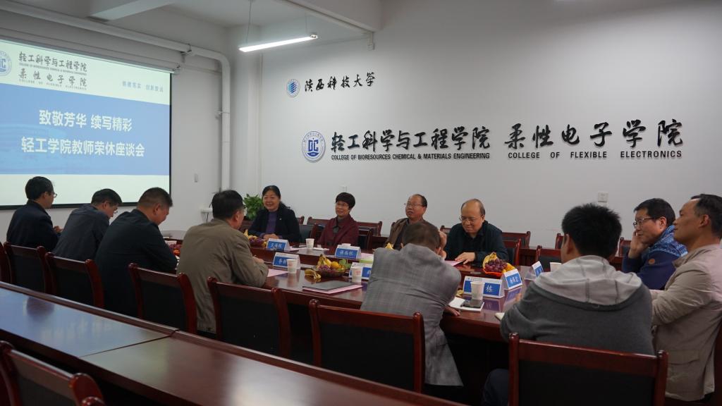 10月12日,輕工科學與工程學院(柔性電子學院)在218會議室舉行教師榮休座談會。王海艦、強西懷、黃玲、李鴻魁等4位退休教師,輕工學院黨政班子成員及部分教師代表參加了座談。院工會主席張乾隆主持會議。
