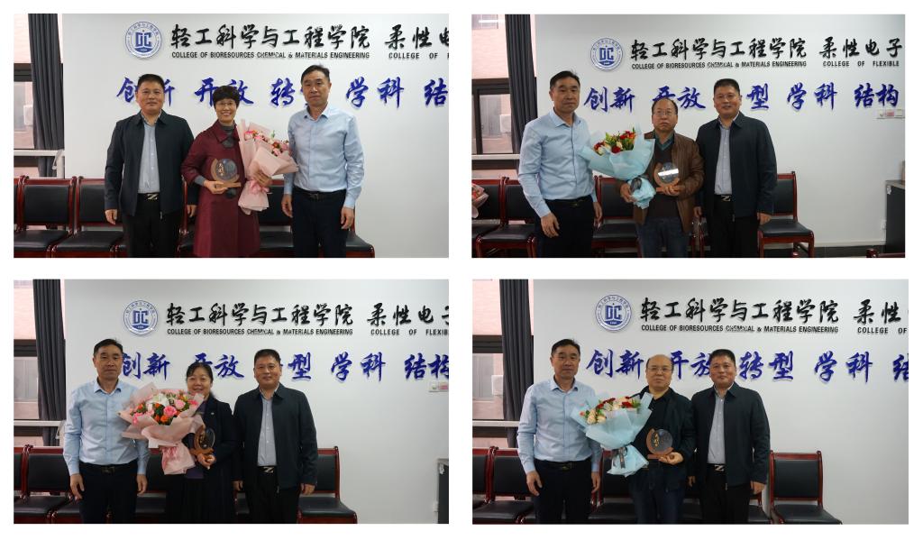 學院黨委書記李新平代表學院對光榮退休的四位老師表達感謝和祝福,并充分肯定了他們多年來為學校、學院做出的貢獻,向他們表示崇高的敬意,希望退休教師能與學院保持緊密聯(lián)系,一如既往的關(guān)心、支持學院事業(yè)的改革與發(fā)展,同時祝愿他們退休生活更加豐富多彩。輕工學院院長呂斌在講話中對四位老師奉獻學校、學院,在學科專業(yè)建設(shè)、人才培養(yǎng)、科學研究、服務(wù)社會、實驗室建設(shè)等方面做出的突出貢獻表示感謝,希望老師們安排好退休后的生活,將自己積累的人生經(jīng)驗和教育理念分享傳承下去。