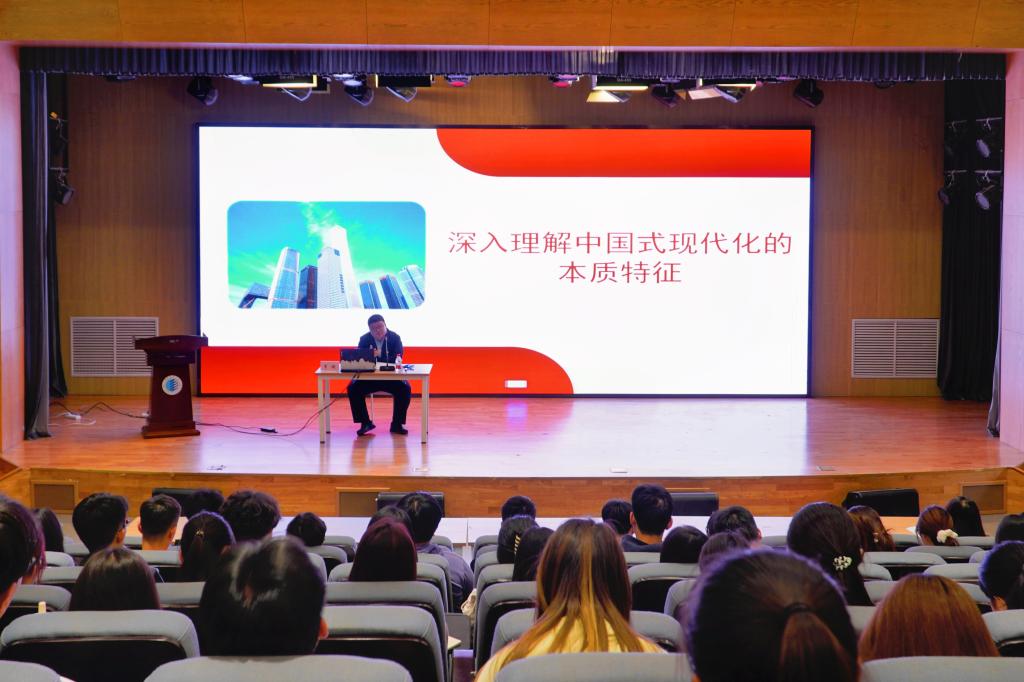 李鵬從黨的二十大報告中提到的中國式現代化的五大特征講起,在對每個特征進行詳細闡述的基礎上,和學員們深入探討中國式現代化的深刻內涵以及重要意義。他表示,中國式現代化既有各國現代化的共同特征,更有基于中國國情的獨有特征。中國式現代化是建黨百年來理論創(chuàng)新的重要成果,是馬克思主義基本原理同中華優(yōu)秀傳統(tǒng)文化相結合的產物,為實現中華民族偉大復興提供了方向和路徑,也為人類實現現代化提供了一種新的選擇。授課過程中,李鵬教育引導學員們要將習近平總書記提到的“以史為鑒,開創(chuàng)未來”融入工作與學習,要堅持讀原著學原文悟原理,養(yǎng)成愛讀書、善讀書、讀好書的習慣。不斷把握歷史規(guī)律、堅定歷史自信、掌握歷史主動;不斷提高認識水平和辨別能力,增強錨定既定目標、意氣風發(fā)走向未來的勇氣和力量,更加清醒地、堅定地辦好我們當前的事情;不斷做到理論與實踐相結合,不負時代、不負韶華,踔厲奮發(fā)、勇毅前行,爭當中國式現代化新征程上的先鋒力量。