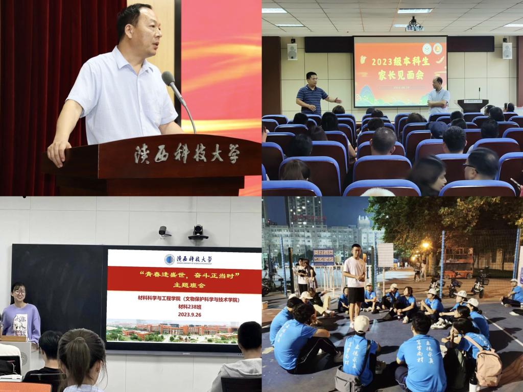聚焦目標(biāo)引領(lǐng) 助力適應(yīng)教育。新生報(bào)到當(dāng)天,材料學(xué)院通過(guò)舉辦新生家長(zhǎng)見(jiàn)會(huì),走訪慰問(wèn)新生宿舍等活動(dòng),加強(qiáng)學(xué)院與家庭間的聯(lián)系溝通,構(gòu)建家校聯(lián)動(dòng)多維責(zé)任意識(shí)和教育格局;院長(zhǎng)朱建鋒在“策馬揚(yáng)鞭正當(dāng)時(shí),矢志篤行立芳華” 2023級(jí)新生“開(kāi)學(xué)第一課”中,從學(xué)院辦學(xué)歷史入手,希望同學(xué)們培養(yǎng)自律品格,樹(shù)立遠(yuǎn)大理想,提升綜合能力,成為材料力量、國(guó)家棟梁;2023級(jí)青年教師輔導(dǎo)員舉行主題班會(huì),向新生提出了“成才先成人”的殷切期盼,勉勵(lì)同學(xué)們堅(jiān)定信念,學(xué)好知識(shí),以飽滿的姿態(tài)迎接大學(xué)生活;各班班助利用軍訓(xùn)間歇開(kāi)展“按部就‘班’,‘助’力同行”等主題宣講活動(dòng),結(jié)合自身經(jīng)歷,引導(dǎo)新生培養(yǎng)良好學(xué)習(xí)生活習(xí)慣,在新的校園中順利航行。