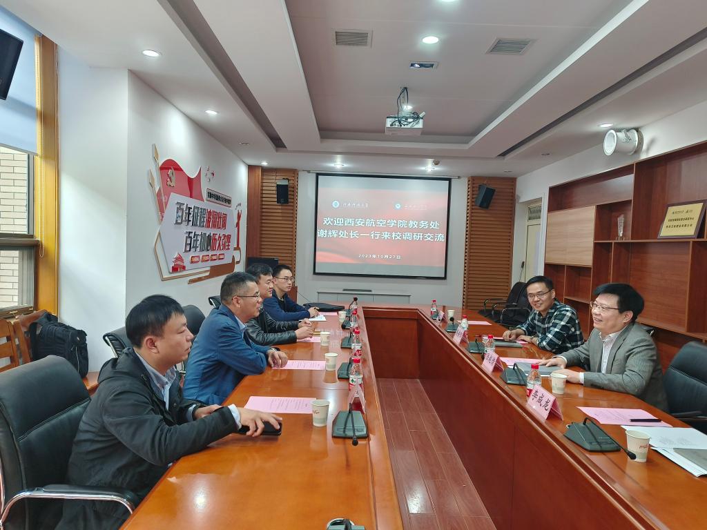 10月27日,西安航空學(xué)院教務(wù)處處長(zhǎng)謝輝一行4人來(lái)我校研究生院調(diào)研交流研考考點(diǎn)工作。研究生院院長(zhǎng)陸趙情、研招辦工作人員參加交流活動(dòng),會(huì)議由研究生院副院長(zhǎng)吳魯陽(yáng)主持。