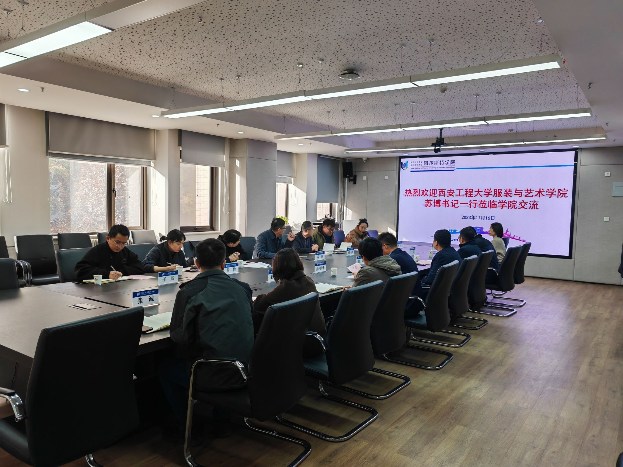 11月16日上午,西安工程大學(xué)服裝與藝術(shù)設(shè)計(jì)學(xué)院黨委書記蘇博一行7人來阿爾斯特學(xué)院調(diào)研交流。學(xué)院領(lǐng)導(dǎo)班子及相關(guān)工作人員參加交流研討。