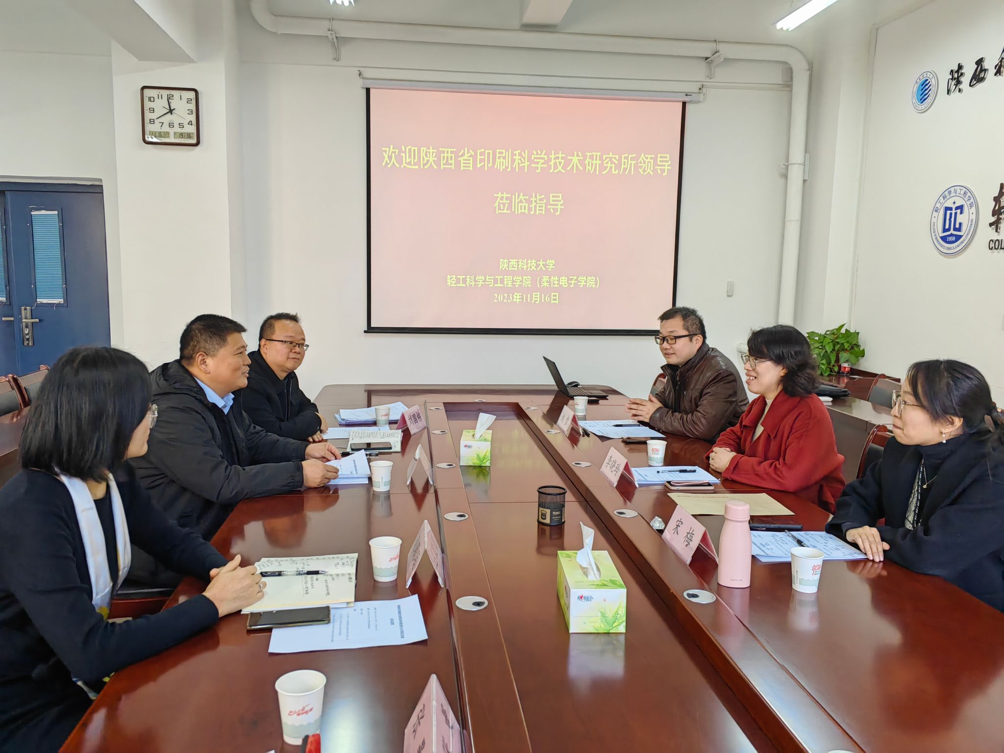 11月16日上午,陜西省印刷技術(shù)研究所有限責(zé)任公司所長李曉玲、副所長姚哲、產(chǎn)業(yè)發(fā)展中心主任宋梅一行到輕工科學(xué)與工程學(xué)院(柔性電子學(xué)院)進行交流。輕工學(xué)院院長呂斌、副院長劉國棟、印刷工程系主任遲聰聰?shù)葏⒓幼?。會議由劉國棟主持。
