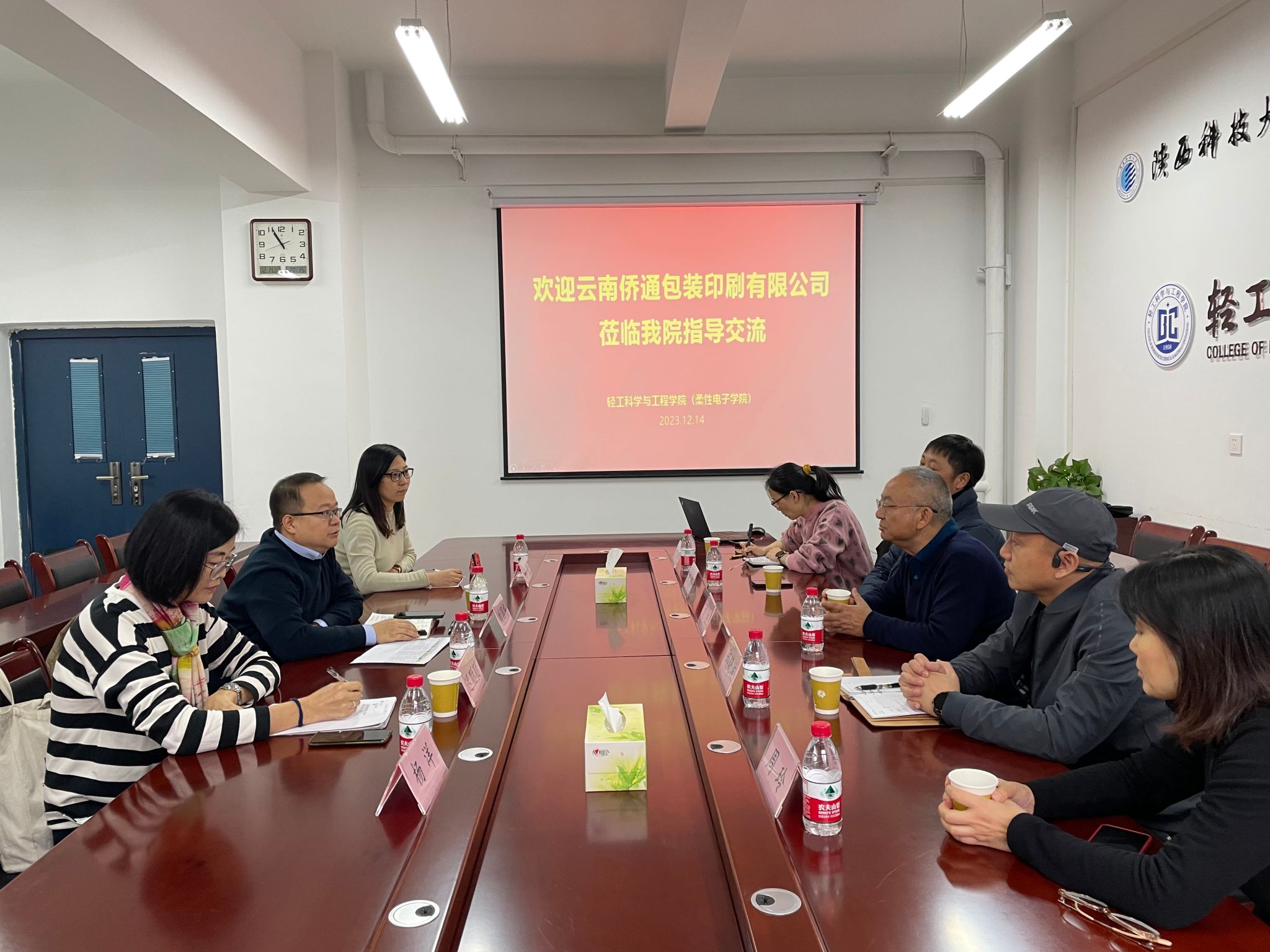 12月14日上午,云南僑通包裝印刷有限公司副總經理、技術中心主任文杰,副主任鄭曉波,研發(fā)部部長桑波,辦公室主任周玲,研發(fā)部研究員夏瑋瑋等一行到輕工科學與工程學院(柔性電子學院)進行交流。輕工學院副院長劉國棟、印刷工程系主任遲聰聰、印刷系教師代表參加座談。會議由劉國棟主持。