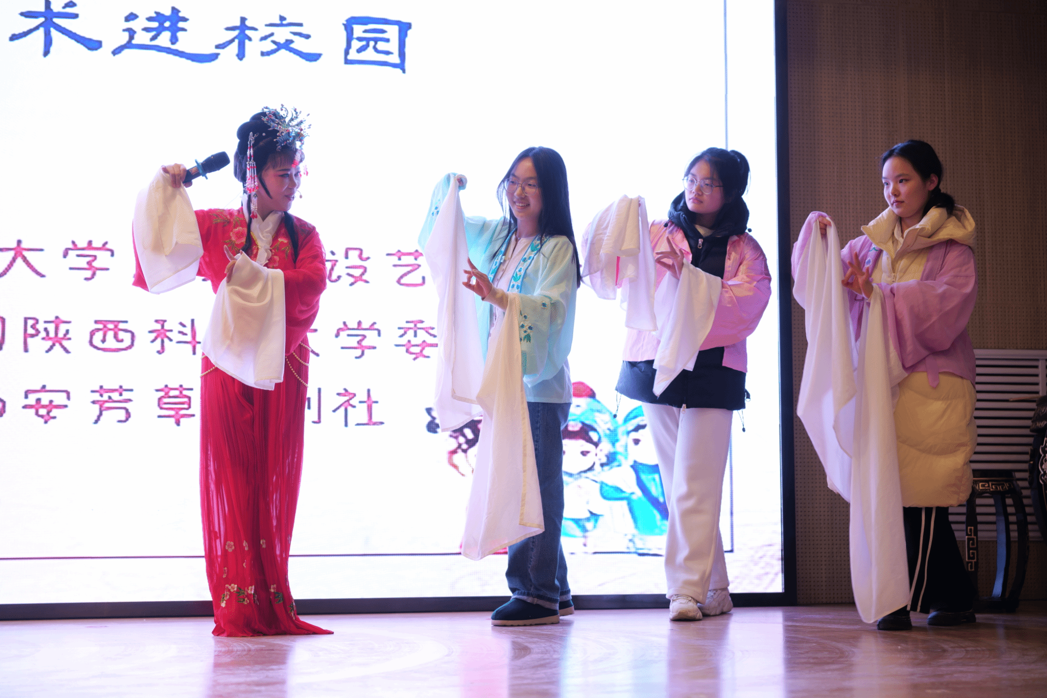 12月17日晚,由校團委主辦的“越韻滿秦漢,經(jīng)典永流傳”越劇進校園活動在設藝小劇場圓滿落下帷幕。百余名師生觀看了西安芳草越劇社帶來的精彩演出。
