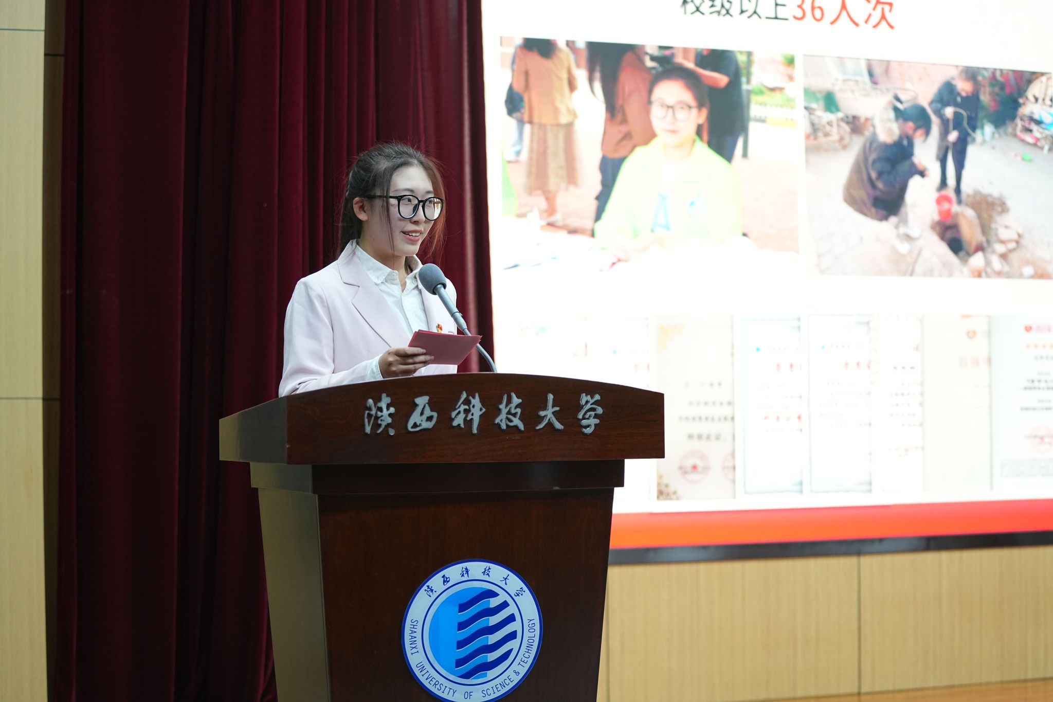 大會最后,校至誠至博獎學(xué)金獲得者、2020級學(xué)生陳益嘉,講述了她保研天津大學(xué)的奮斗歷程,分享了三年多以來在志愿服務(wù)、科技創(chuàng)新等方面精彩充實的大學(xué)生活,鼓勵同學(xué)們志存高遠,腳踏實地。