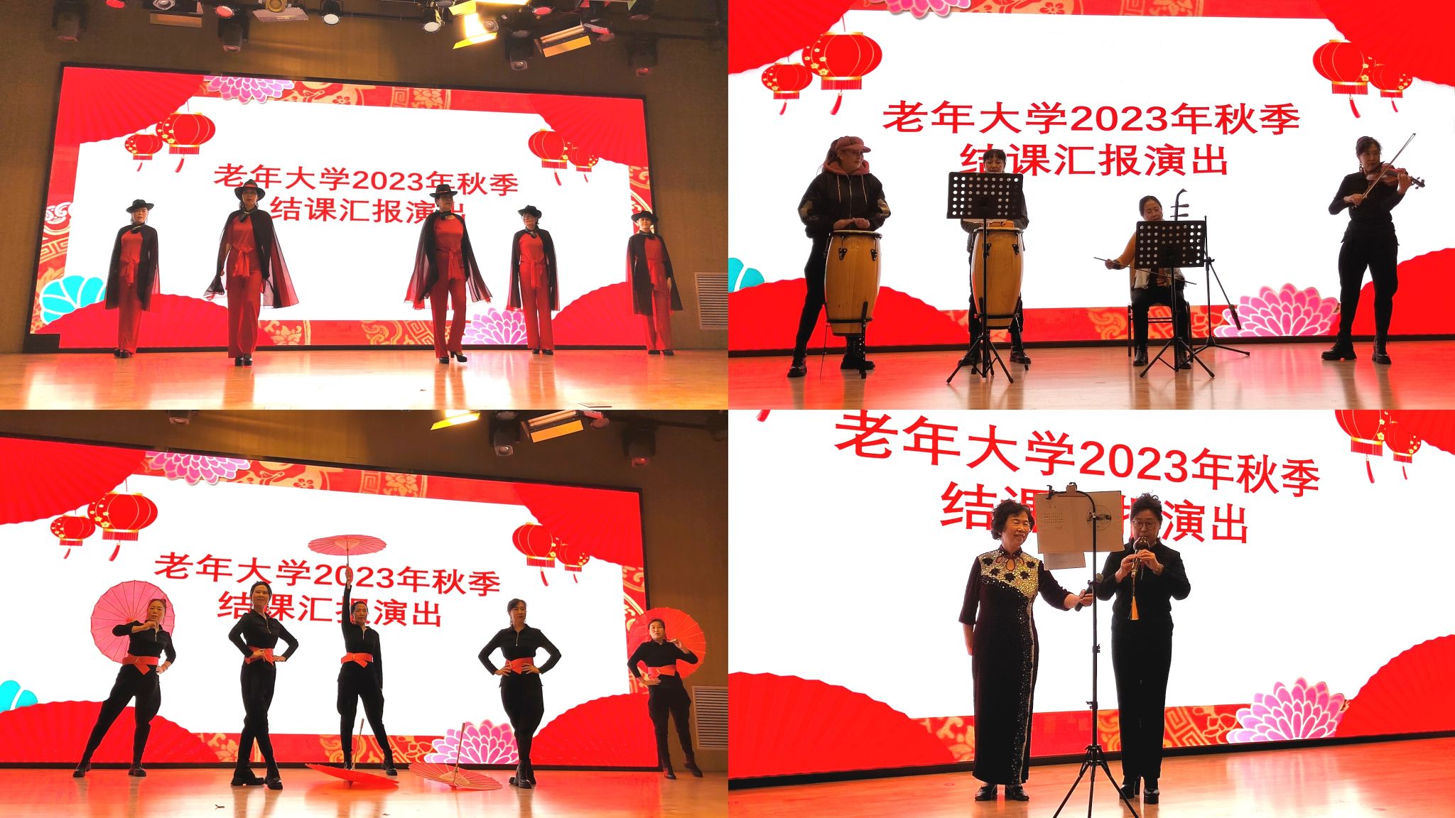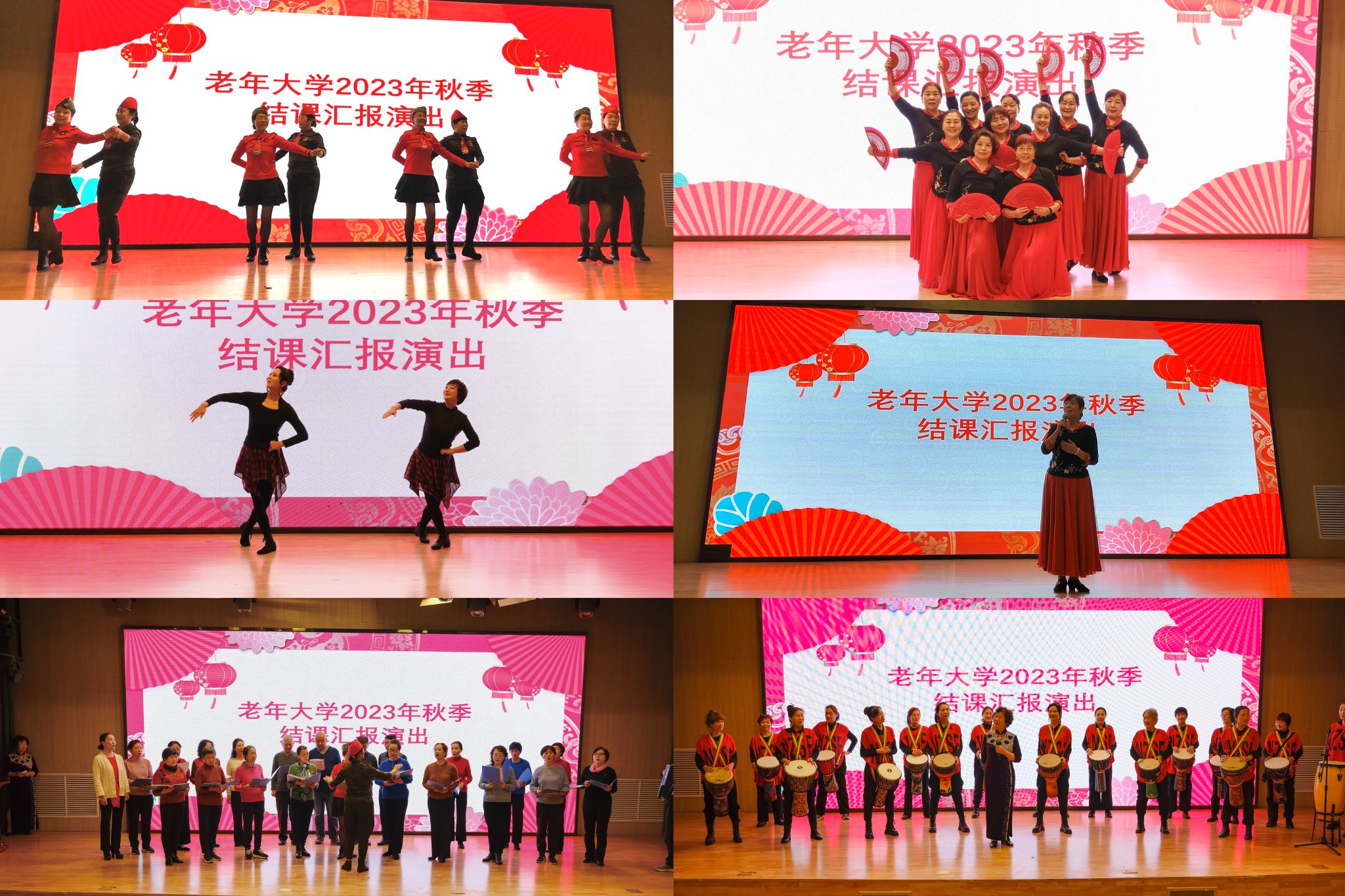 展演活動(dòng)內(nèi)容豐富、形式多樣、精彩紛呈。近百名學(xué)員傾情奉獻(xiàn)了書畫、獨(dú)唱、合唱、器樂、舞蹈、朗誦、時(shí)裝秀等15個(gè)精彩節(jié)目。此次演出活動(dòng),豐富了學(xué)員舞臺(tái)表演經(jīng)驗(yàn),提升了學(xué)員自信心和幸福感。