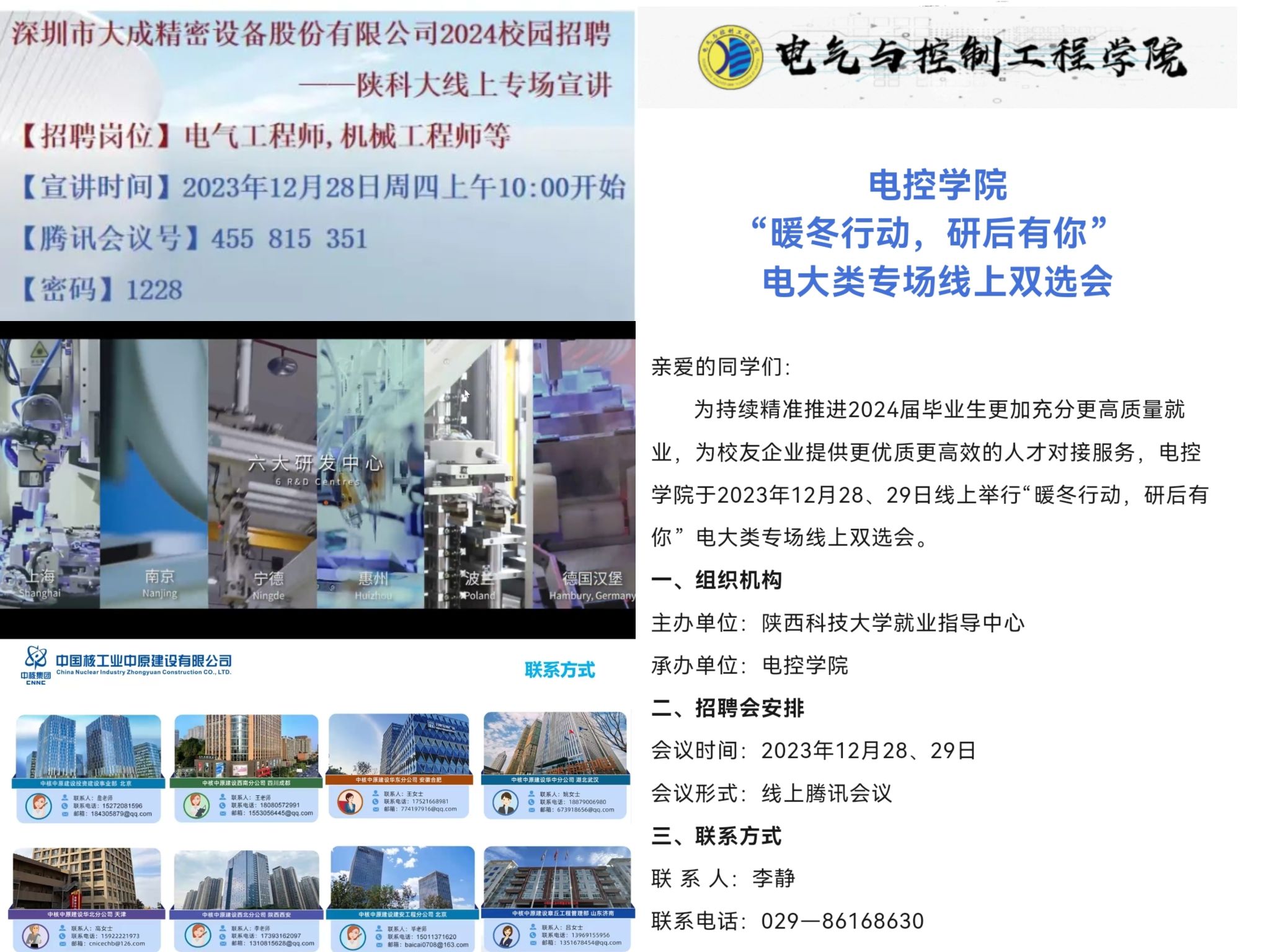 為深入貫徹上級關(guān)于促進(jìn)高校畢業(yè)生就業(yè)創(chuàng)業(yè)決策部署,按照2024屆全省高校畢業(yè)生就業(yè)創(chuàng)業(yè)工作會議精神及學(xué)校就業(yè)指導(dǎo)中心促就業(yè)有關(guān)要求,電氣與控制工程學(xué)院于2024年全國碩士研究生招生考試結(jié)束后立即開展”暖冬行動(dòng),研后有你”系列就業(yè)賦能活動(dòng)。