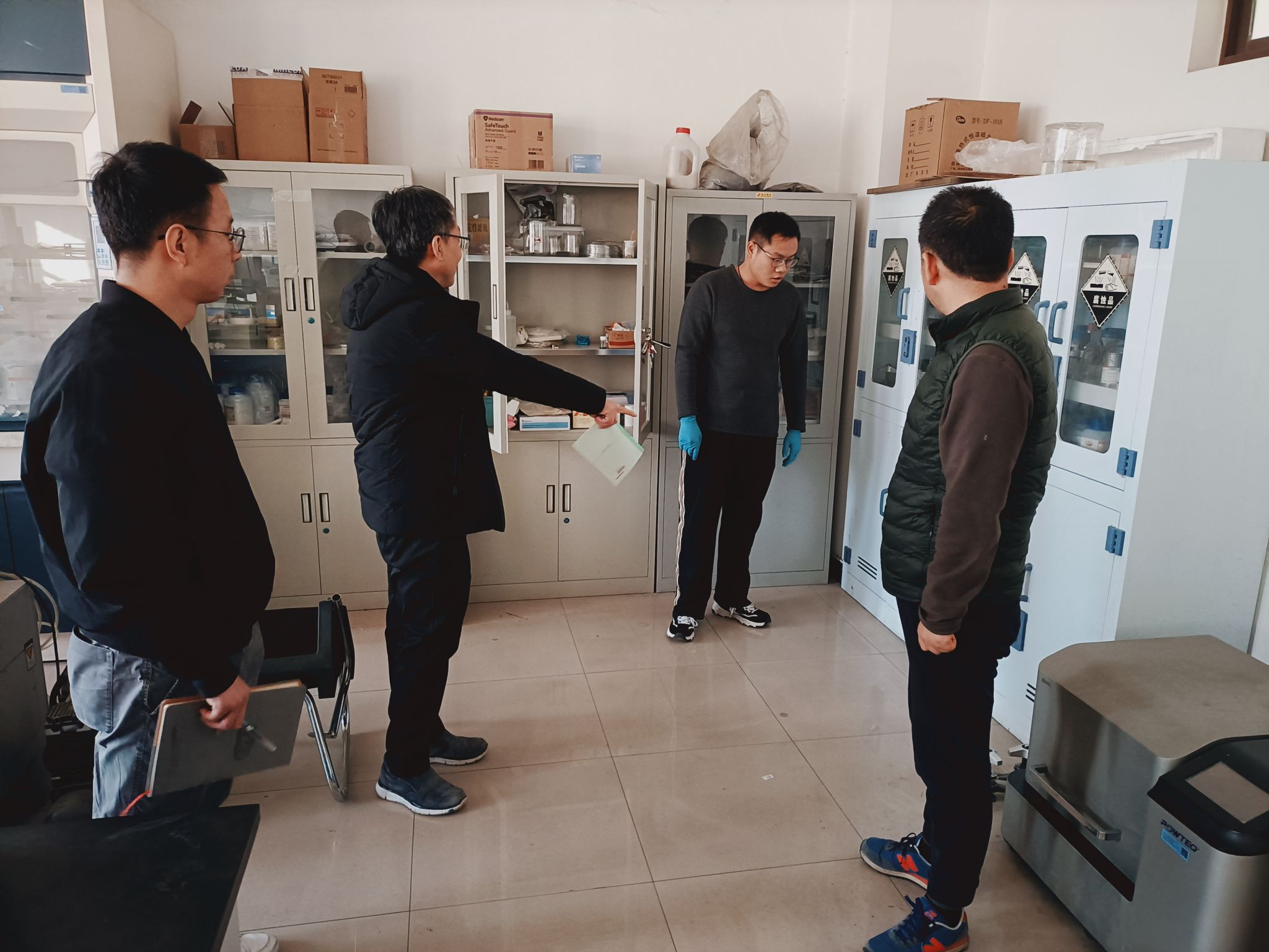 安全檢查過程中,還對研究生出勤情況做了詳細考核,與留校研究的導(dǎo)師、學(xué)生進行了交流,并對學(xué)生進行了安全教育,要求寒假期間,導(dǎo)師要做好留校學(xué)生的科研項目風險評估,提醒實驗操作注意事項,加強實驗安全管理。