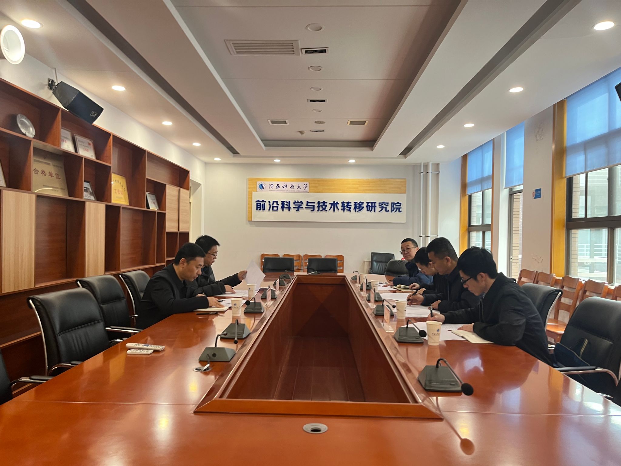 為加快推進(jìn)我??萍汲晒D(zhuǎn)化“三項(xiàng)改革”試點(diǎn)任務(wù)落地見效,3月8日上午,渭南市科技局副局長(zhǎng)張勝康一行4人來我校就秦創(chuàng)原陜西科技大學(xué)(渭南)技術(shù)轉(zhuǎn)移中心建設(shè)工作進(jìn)行專項(xiàng)調(diào)研。前沿院相關(guān)科室負(fù)責(zé)人參加座談,會(huì)議由前沿院副院長(zhǎng)張鵬偉主持。