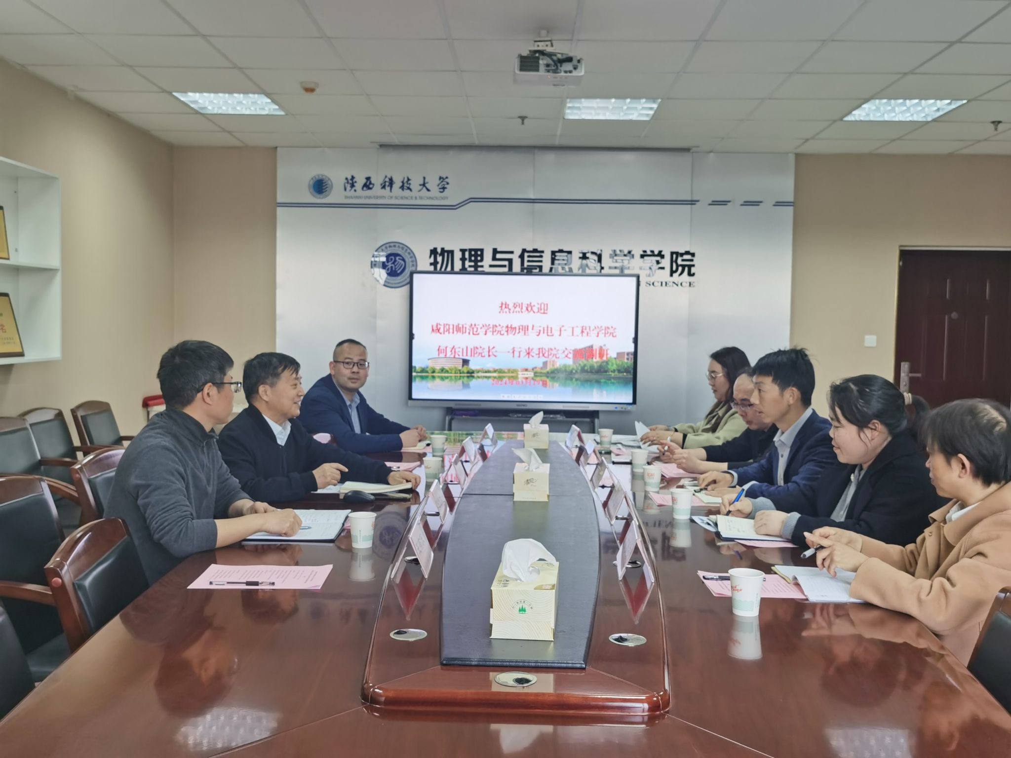 3月20日,咸陽師范學(xué)院物理與電子工程學(xué)院院長何東山一行5人來物理與信息科學(xué)學(xué)院交流學(xué)科專業(yè)建設(shè)、本科教學(xué)、科學(xué)研究、考研就業(yè)等工作。學(xué)院班子成員、系主任參加了座談會。座談會由物理學(xué)院院長劉建科主持。