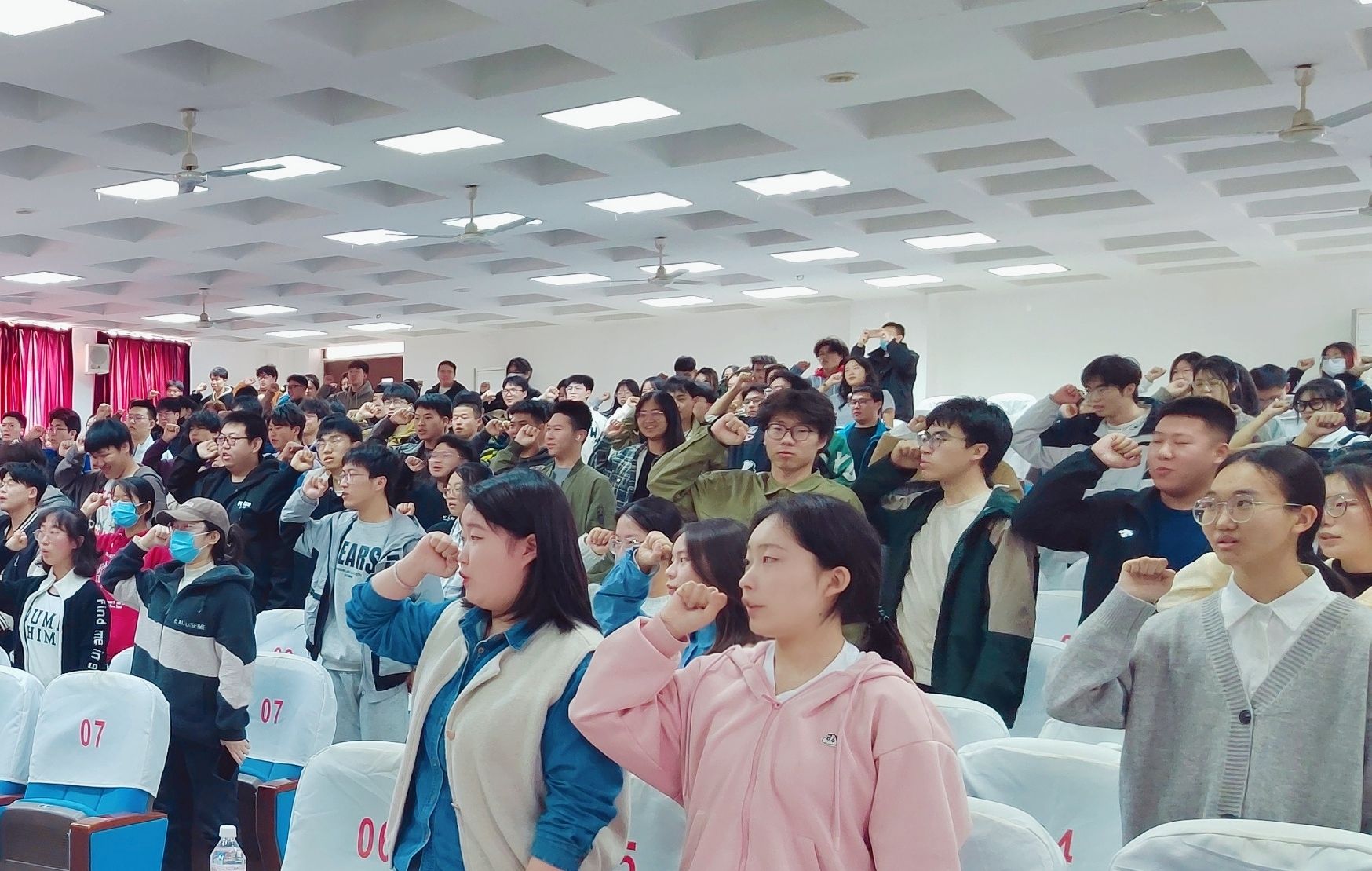 啟動儀式第一階段,學生潛能發(fā)展中心負責人王慧芳介紹了學校第九屆“陽光護航”心理育人宣傳季活動方案。張凱凱宣讀了2023年度優(yōu)秀班級心理委員名單。全國百佳心理委員獲得者、“SUSTer同心”朋輩幫扶團團長、文化與教育學院學生代表萬依彤作經(jīng)驗分享,并帶領(lǐng)全體心理骨干集體宣誓,共同承諾珍愛生命、激揚青春。