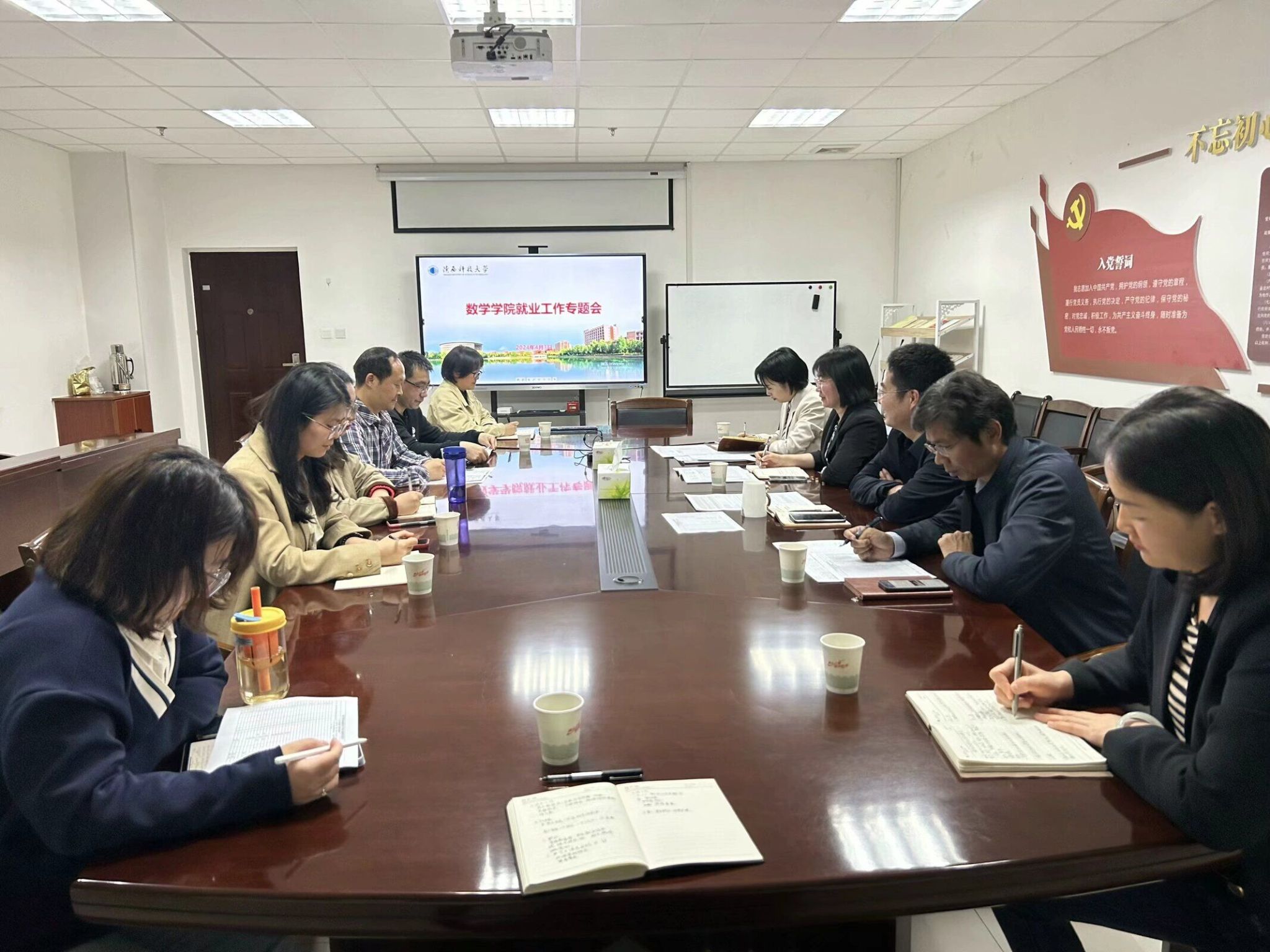 為進(jìn)一步推動2024屆畢業(yè)生就業(yè)工作,緊抓就業(yè)高峰期和考研復(fù)試關(guān)鍵期,促進(jìn)畢業(yè)生就業(yè)工作提質(zhì)增效,4月3日上午,數(shù)學(xué)與數(shù)據(jù)科學(xué)學(xué)院召開2024屆畢業(yè)生就業(yè)工作推進(jìn)會,學(xué)院班子成員、各系正副主任、黨支部書記、畢業(yè)班輔導(dǎo)員參加會議。會議由院長助理、學(xué)生工作負(fù)責(zé)人宋沛主持。