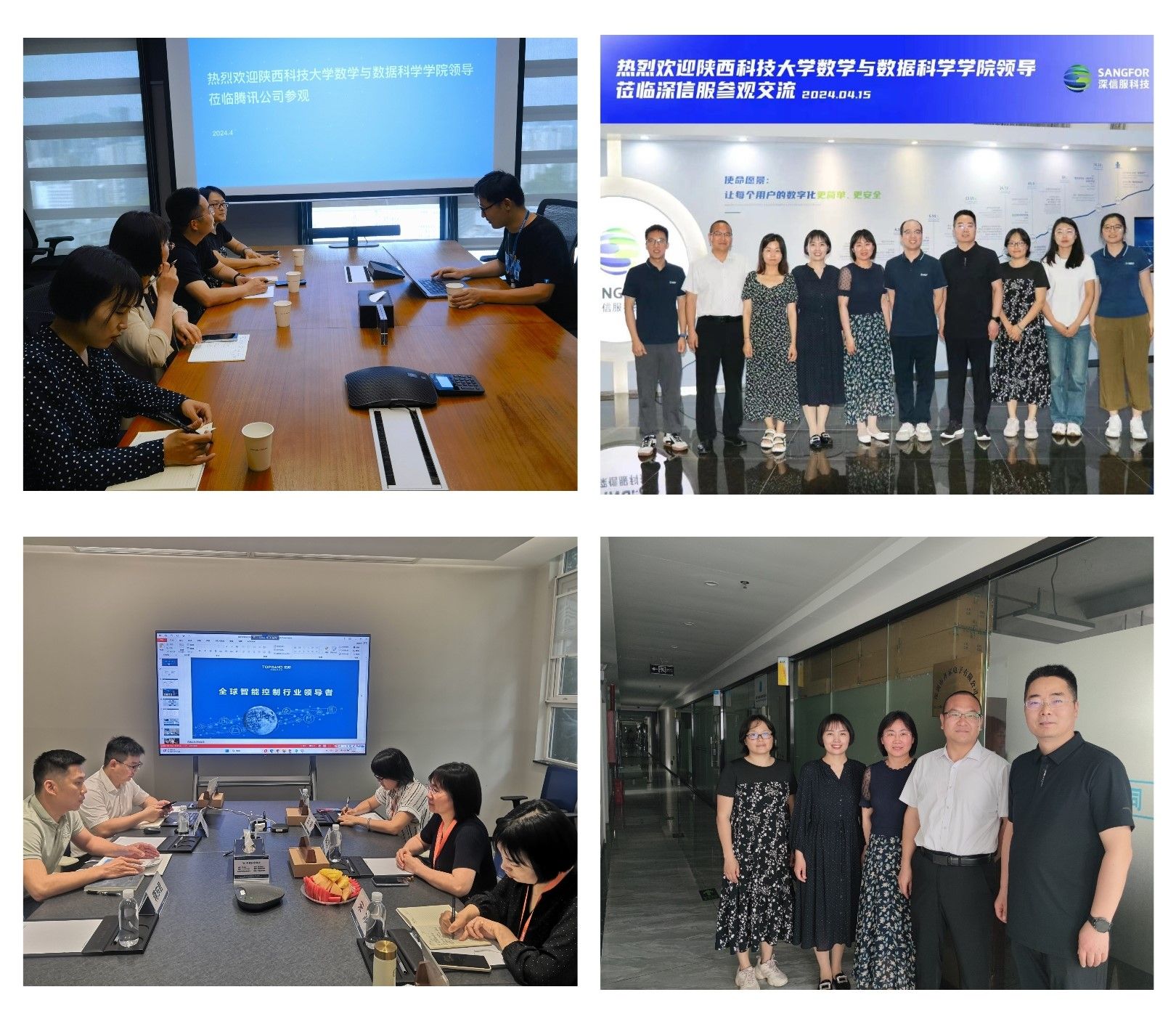 郭改慧一行先后走進(jìn)深圳市騰訊計(jì)算機(jī)系統(tǒng)有限公司、深信服科技股份有限公司、深圳拓邦股份有限公司、深圳齊家電子有限公司等校友企業(yè),與相關(guān)部門負(fù)責(zé)人、校友代表座談交流,并參觀企業(yè)展廳、生產(chǎn)車間、實(shí)驗(yàn)室等。企業(yè)代表分別就企業(yè)文化、歷史沿革、主營(yíng)業(yè)務(wù)、人才招聘等進(jìn)行了詳細(xì)介紹,并對(duì)我校人才培養(yǎng)質(zhì)量給予高度評(píng)價(jià)。郭改慧、李劍分別向企業(yè)代表介紹了數(shù)學(xué)學(xué)院的發(fā)展歷程、師資力量、科研成果、人才培養(yǎng)等,重點(diǎn)介紹了近年來(lái)學(xué)院畢業(yè)生就業(yè)情況。校企雙方就人才培養(yǎng)、校園招聘、校企合作等方面進(jìn)行了深入交流。