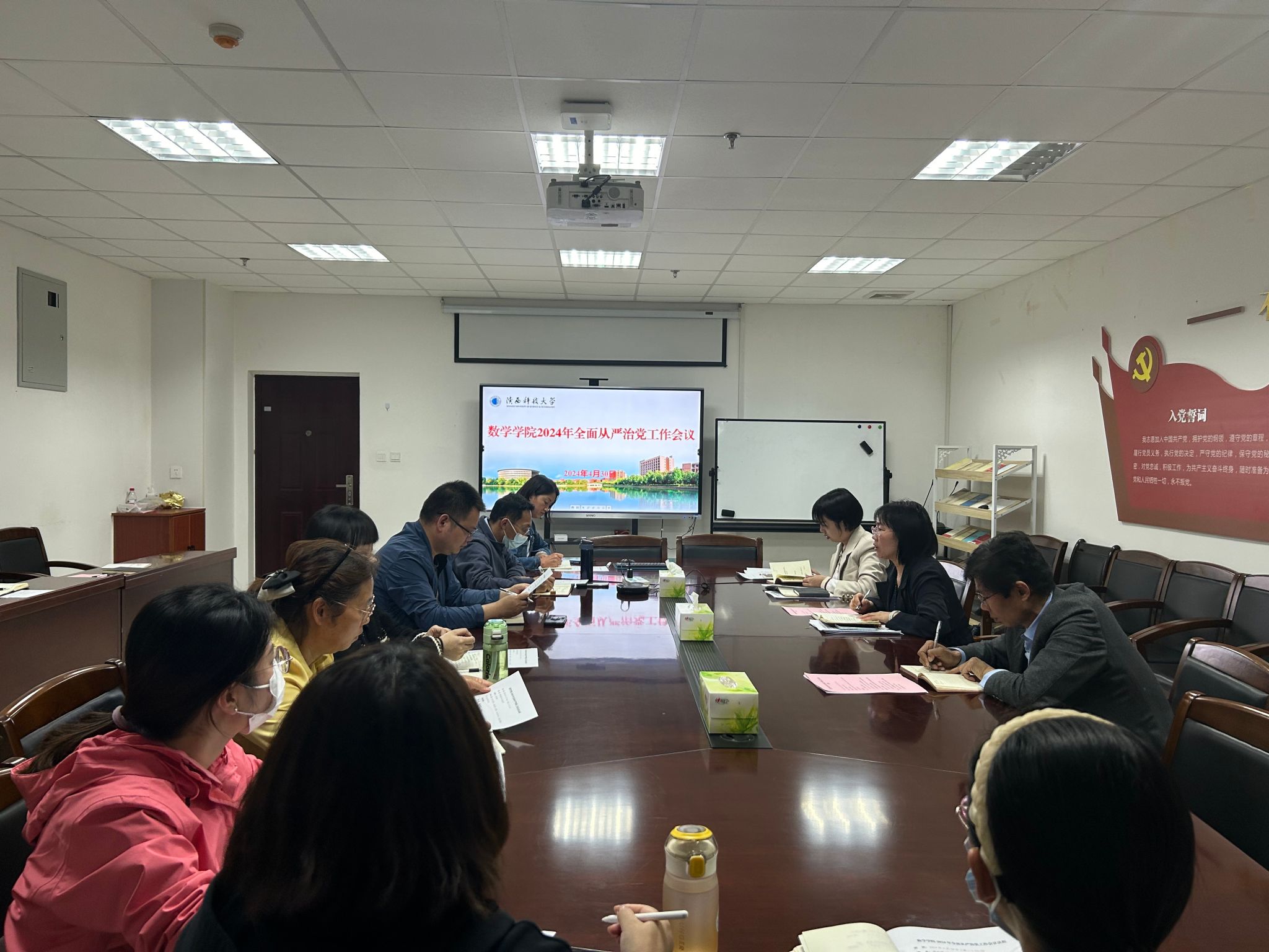 會(huì)議就習(xí)近平總書記關(guān)于黨的自我革命的重要思想、習(xí)近平總書記在二十屆中央紀(jì)委三次全會(huì)上的重要講話和十四屆陜西省紀(jì)委三次全會(huì)精神等內(nèi)容進(jìn)行了集體學(xué)習(xí);傳達(dá)了學(xué)校2024年全面從嚴(yán)治黨工作會(huì)議精神、紀(jì)檢監(jiān)察工作要點(diǎn)和統(tǒng)戰(zhàn)工作要點(diǎn),對(duì)本年度黨風(fēng)廉政工作進(jìn)行了安排部署,研判了學(xué)院意識(shí)形態(tài)工作,并對(duì)近期安全穩(wěn)定工作提出了要求。