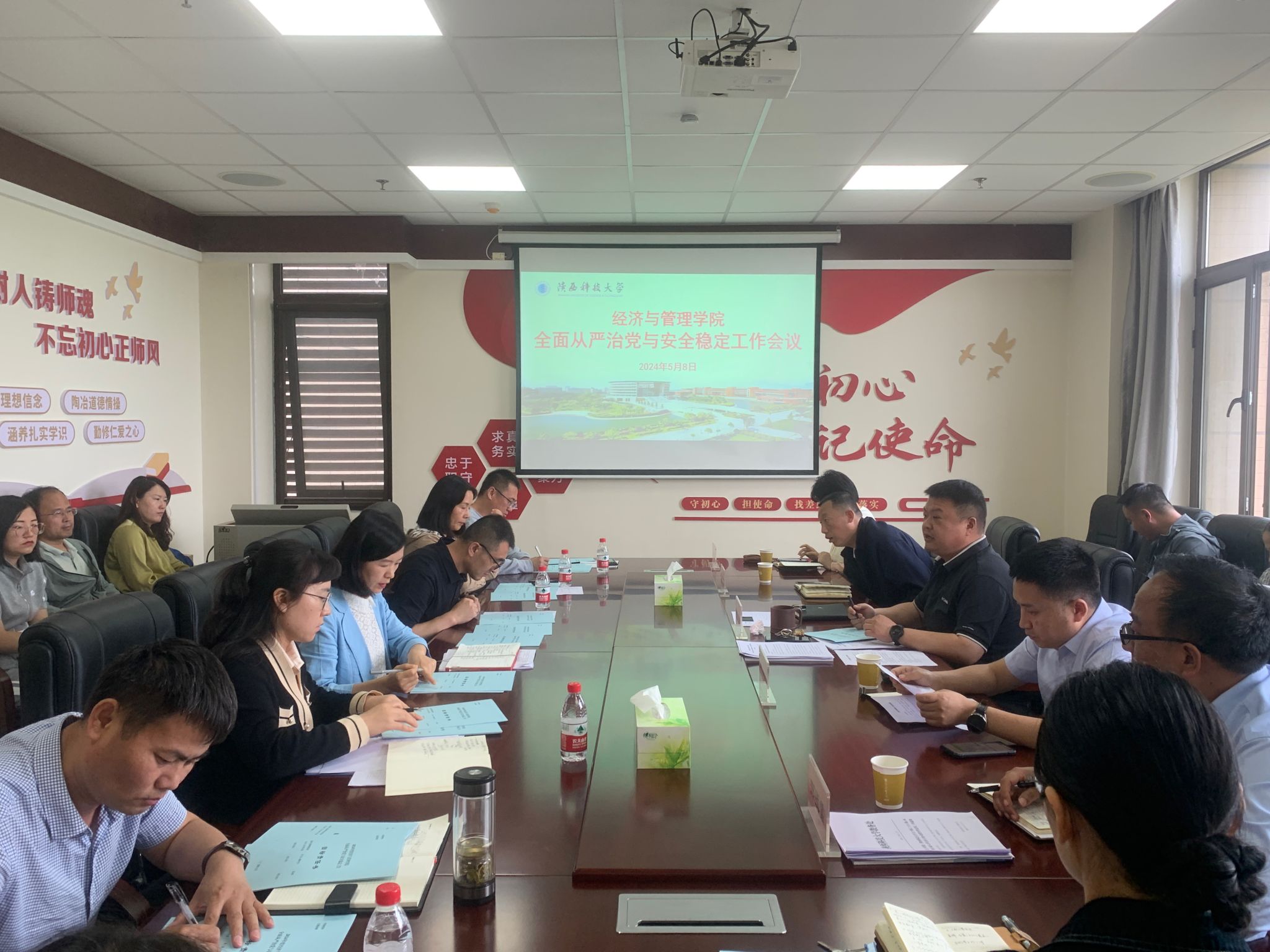 5月8日上午,經(jīng)濟(jì)與管理學(xué)院(亞歐貿(mào)易與數(shù)字經(jīng)濟(jì)學(xué)院)黨委在人文樓A415會(huì)議室召開(kāi)2024年全面從嚴(yán)治黨和安全穩(wěn)定工作會(huì)議,傳達(dá)學(xué)習(xí)學(xué)校院級(jí)單位黨組織會(huì)議、2024年全面從嚴(yán)治黨工作會(huì)議、統(tǒng)一戰(zhàn)線(xiàn)工作領(lǐng)導(dǎo)小組(擴(kuò)大)會(huì)議等主要精神,安排部署學(xué)院2024年全面從嚴(yán)治黨和安全穩(wěn)定主要工作。學(xué)院黨委班子成員、黨委委員、系主任、教工黨支部書(shū)記、教學(xué)秘書(shū)、科研秘書(shū)、研究生秘書(shū)、實(shí)驗(yàn)室負(fù)責(zé)人員參加會(huì)議,會(huì)議由學(xué)院黨委書(shū)記崔楠主持。