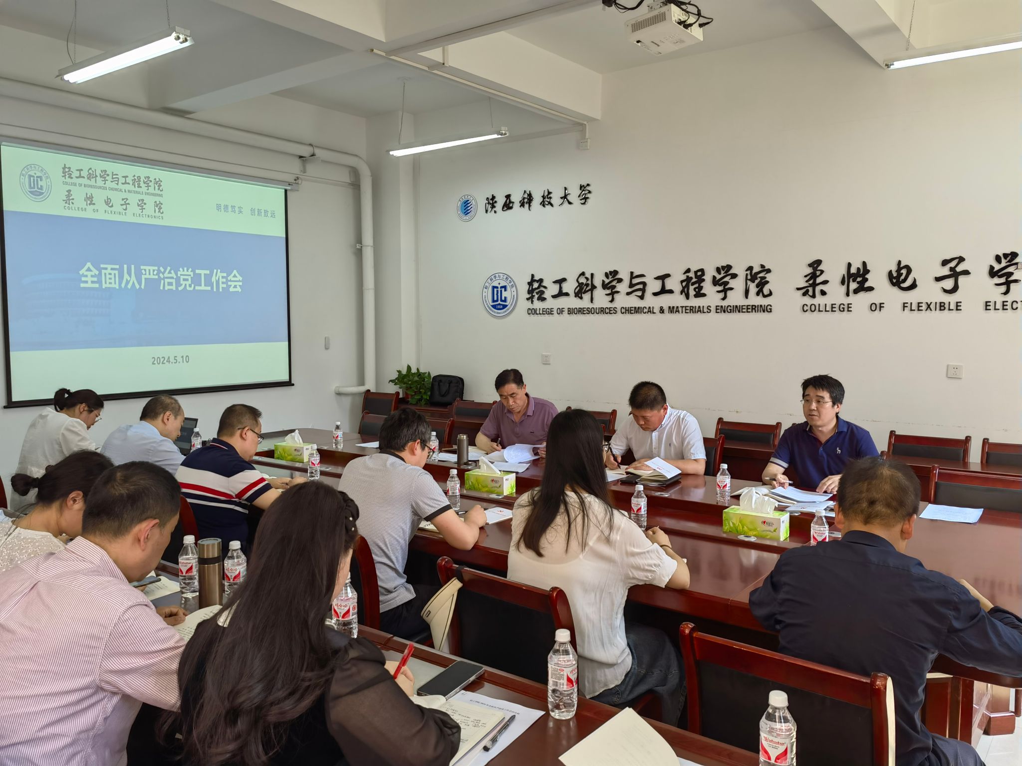 5月10日下午,輕工科學(xué)與工程學(xué)院(柔性電子學(xué)院)黨委召開全面從嚴(yán)治黨工作會議,學(xué)院黨政班子成員、黨委委員、紀(jì)委委員、全體黨支部書記參加會議。會議由學(xué)院黨委書記李新平主持。