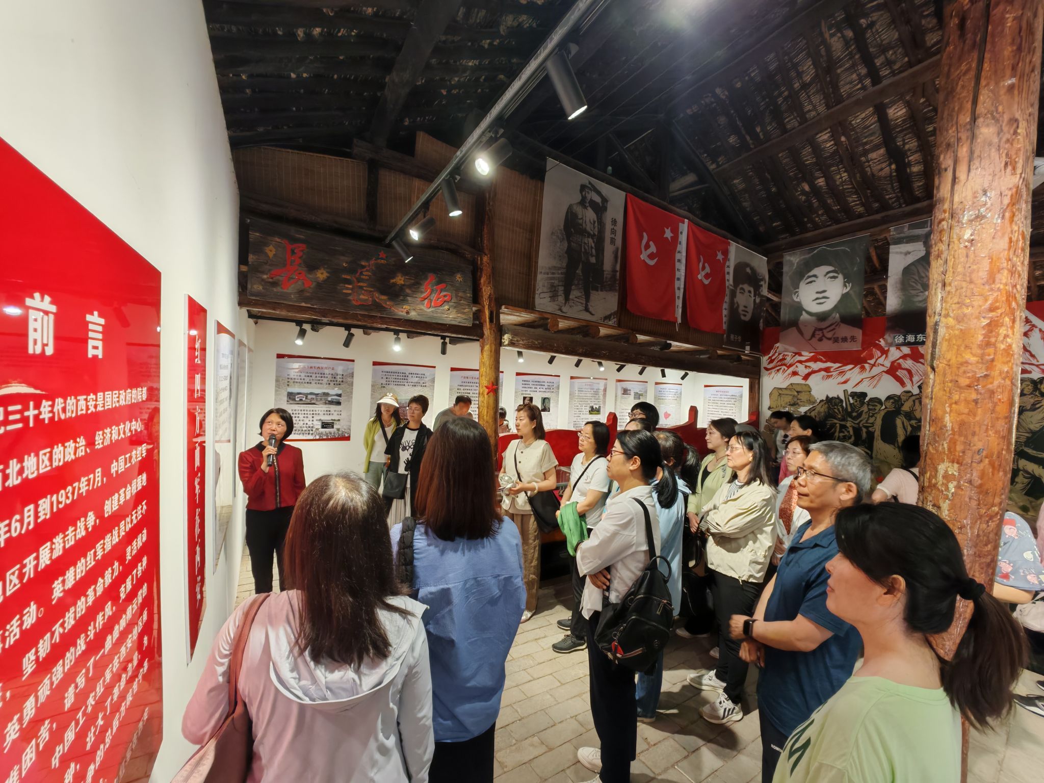 紅軍過境戶縣陳列館位于西安市鄠邑區(qū)石井鎮(zhèn)栗峪口村,主要紀念長征期間的紅四方面軍、紅二十五軍和紅七十四師經(jīng)過戶縣及栗峪口村的戰(zhàn)斗歲月。講解員通過一件件簡樸泛黃的展品,一張張珍貴的歷史圖片,向黨員們再現(xiàn)了三支紅軍隊伍沿秦嶺北西征到戶縣境內(nèi)的戰(zhàn)斗史實。紅軍戰(zhàn)士冰天雪地在百姓屋檐下露宿,不拿群眾一針一線,不畏犧牲、傳播革命火種的生動故事,將一支紀律嚴明的隊伍展現(xiàn)在黨員眼前。感動之處,在講解員的帶領(lǐng)下,黨員們即興朗誦了《七律·長征》,對長征精神有了更深一步的領(lǐng)悟。參觀結(jié)束后,全體黨員在陳列館前重溫入黨誓詞。