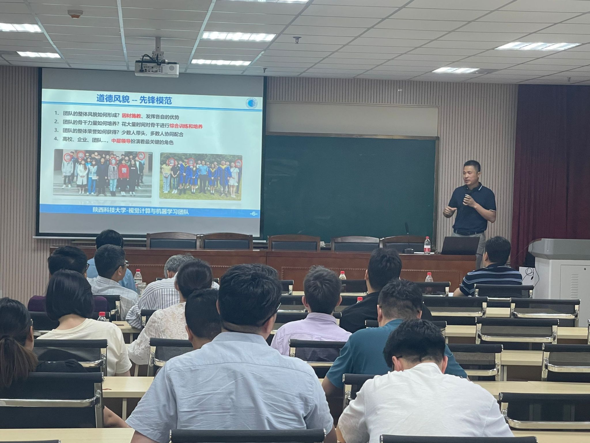 會議第二階段,邀請我校第二屆研究生“最美實驗室團隊”評選一等獎獲得者,電子信息與人工智能學院雷濤教授分享研究生科研團隊合作的經(jīng)驗與技巧。雷教授首先講了團隊組建的思考,隨后從幾個方面講了團隊建設,并指出研究生科研團隊合作是一項復雜的工作,但只要明確目標、合理分工,建立有效的溝通渠道,培養(yǎng)團隊合作精神和處理沖突,就能使團隊合作更加高效和成功,科研團隊合作不僅可以促進研究進展,還能提高論文質(zhì)量和研究成果的影響力。
