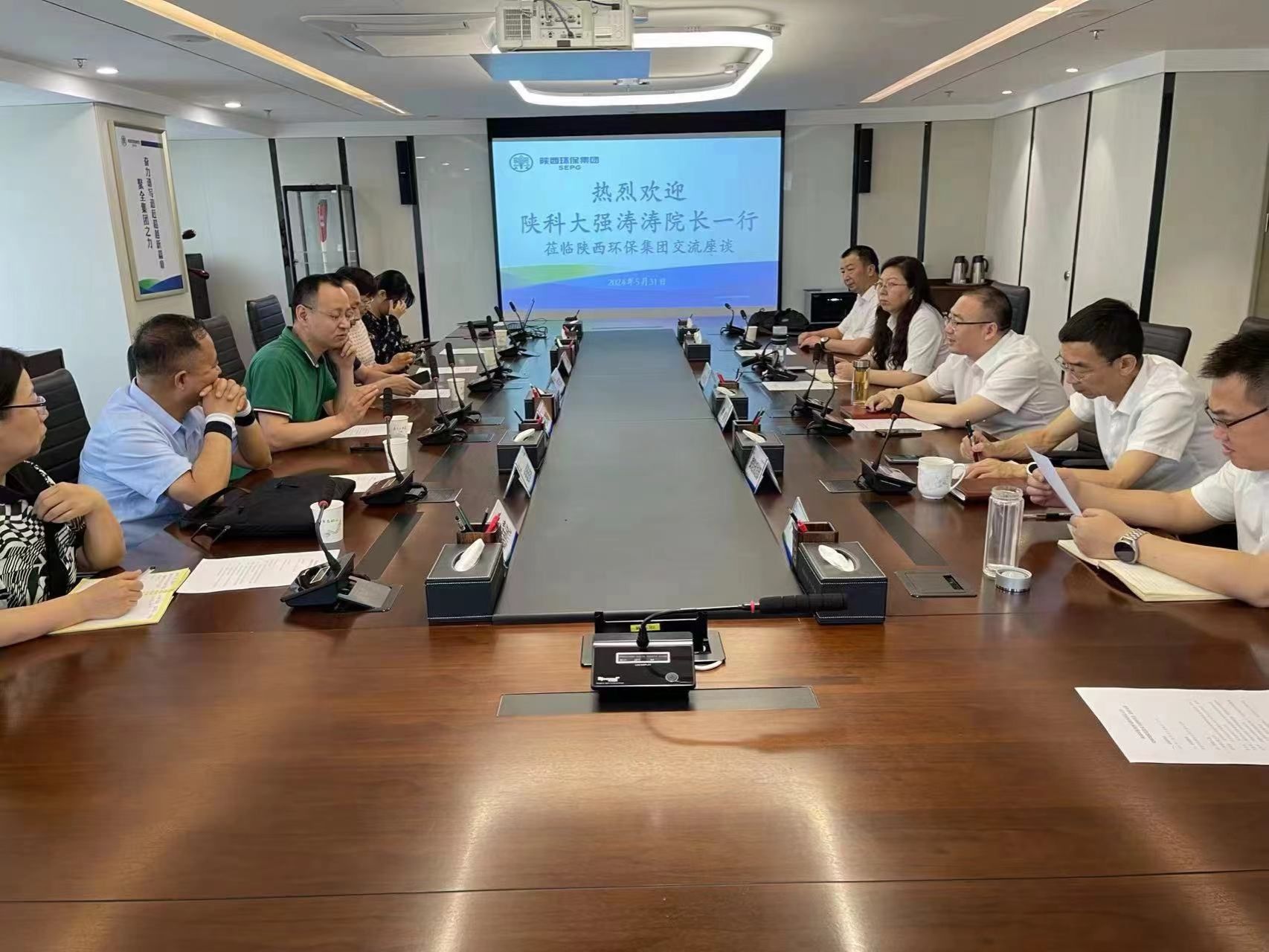 為深入實(shí)施服務(wù)社會(huì)創(chuàng)優(yōu)行動(dòng),促進(jìn)產(chǎn)學(xué)研開放合作,5月31日上午,我校前沿科學(xué)與技術(shù)轉(zhuǎn)移研究院常務(wù)副院長強(qiáng)濤濤及環(huán)境科學(xué)與工程學(xué)院相關(guān)專家教授一行6人赴我省環(huán)保產(chǎn)業(yè)鏈鏈主企業(yè)陜西環(huán)保產(chǎn)業(yè)集團(tuán)有限責(zé)任公司對接科技成果轉(zhuǎn)化及校企合作事宜。集團(tuán)副總經(jīng)理李釗、戰(zhàn)略規(guī)劃部部長張景林、科技部部長劉瑞及相關(guān)部門負(fù)責(zé)人參加會(huì)議。