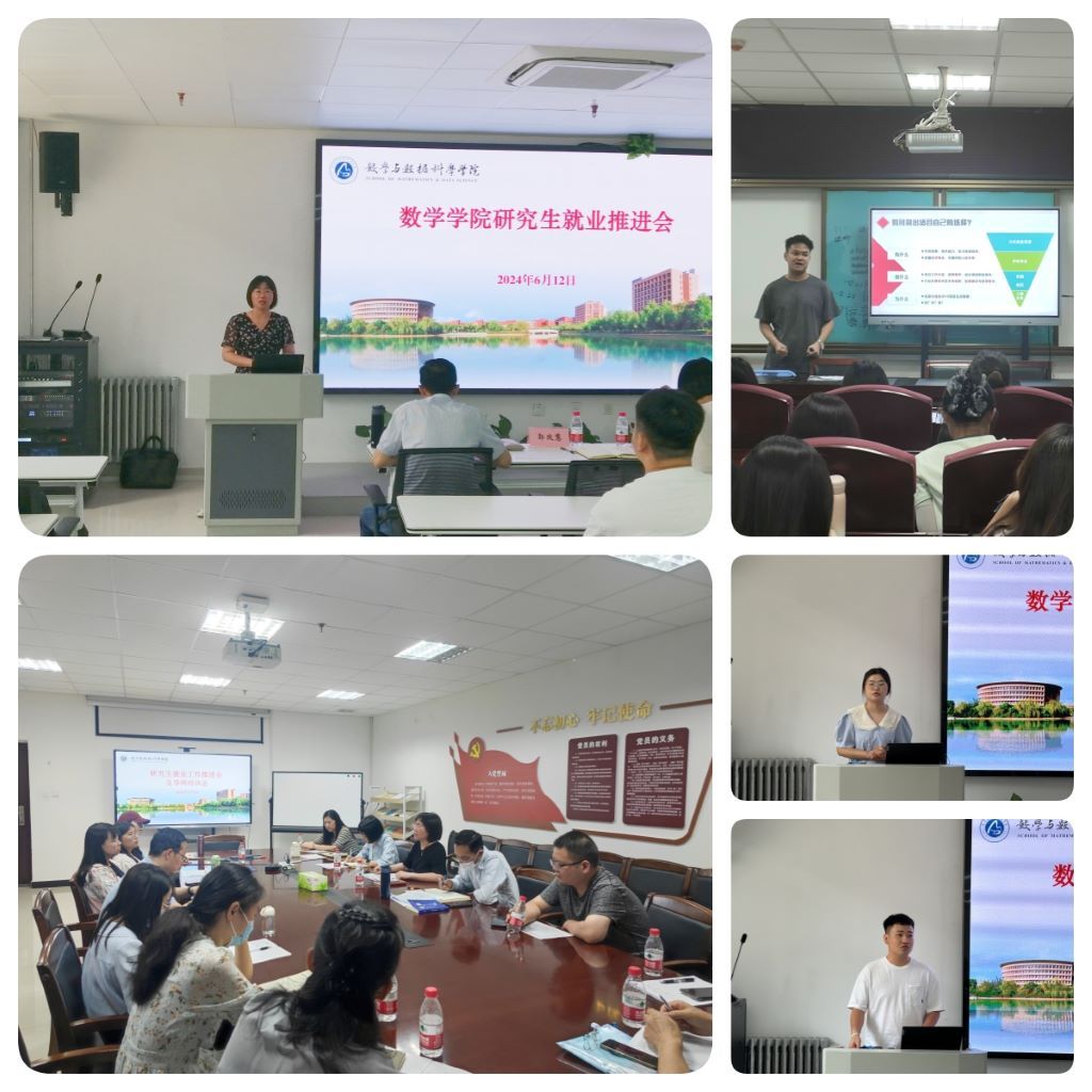 為進(jìn)一步貫徹落實(shí)學(xué)校畢業(yè)生就業(yè)創(chuàng)業(yè)工作會暨“百日沖刺”行動(dòng)會議精神,扎實(shí)做好研究生畢業(yè)生就業(yè)指導(dǎo)與服務(wù)工作,6月7至12日,數(shù)學(xué)學(xué)院先后召開2024屆研究生就業(yè)座談會、2025屆研究生就業(yè)推進(jìn)會、研究生導(dǎo)師就業(yè)專題會議、研究生就業(yè)經(jīng)驗(yàn)分享會等系列活動(dòng),學(xué)院班子成員、研究生導(dǎo)師、研究生輔導(dǎo)員、全體研究生參加上述活動(dòng)。