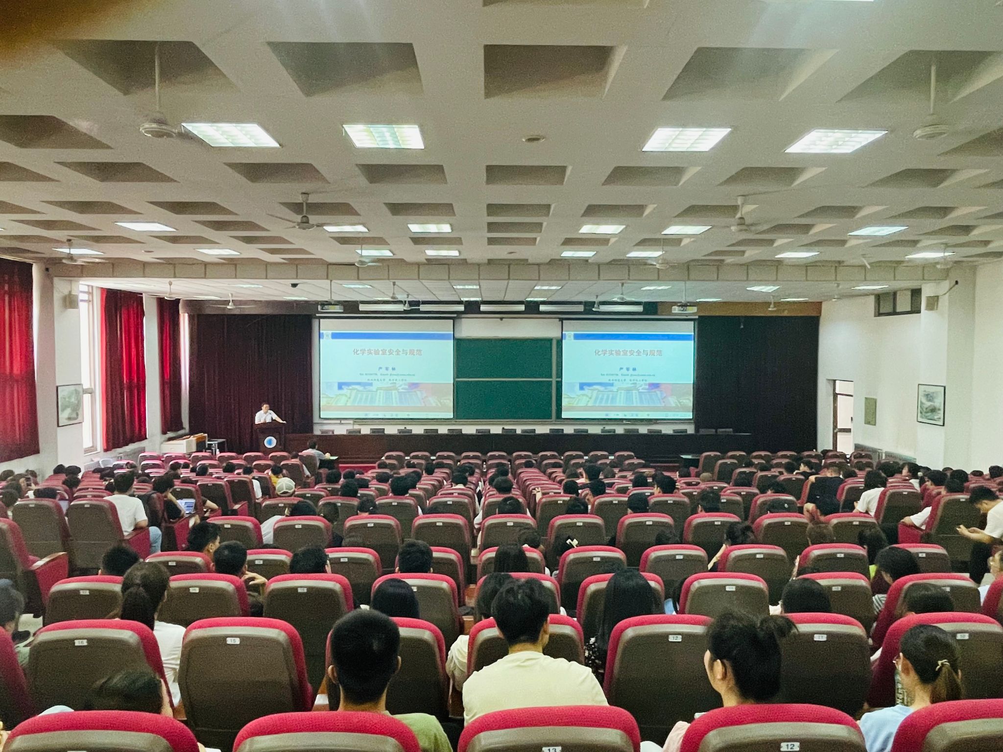 為筑牢校園安全防線,提高師生的實驗室安全意識,培養(yǎng)學生對實驗室安全事故的處置能力,有效防止實驗室安全事故的發(fā)生,6月19日下午,化學與化工學院在三號教學樓102會議室開展實驗室安全管理及實驗安全培訓會。培訓邀請陜西師范大學應(yīng)用表面與膠體化學教育部重點實驗室副主任、化學國家級實驗教學示范中心辦公室主任嚴軍林高級實驗師講授。學院全體教師、全體碩、博士研究生和部分本科生參加培訓,講座由化工學院院長助理王偉濤主持,培訓會分兩階段進行。