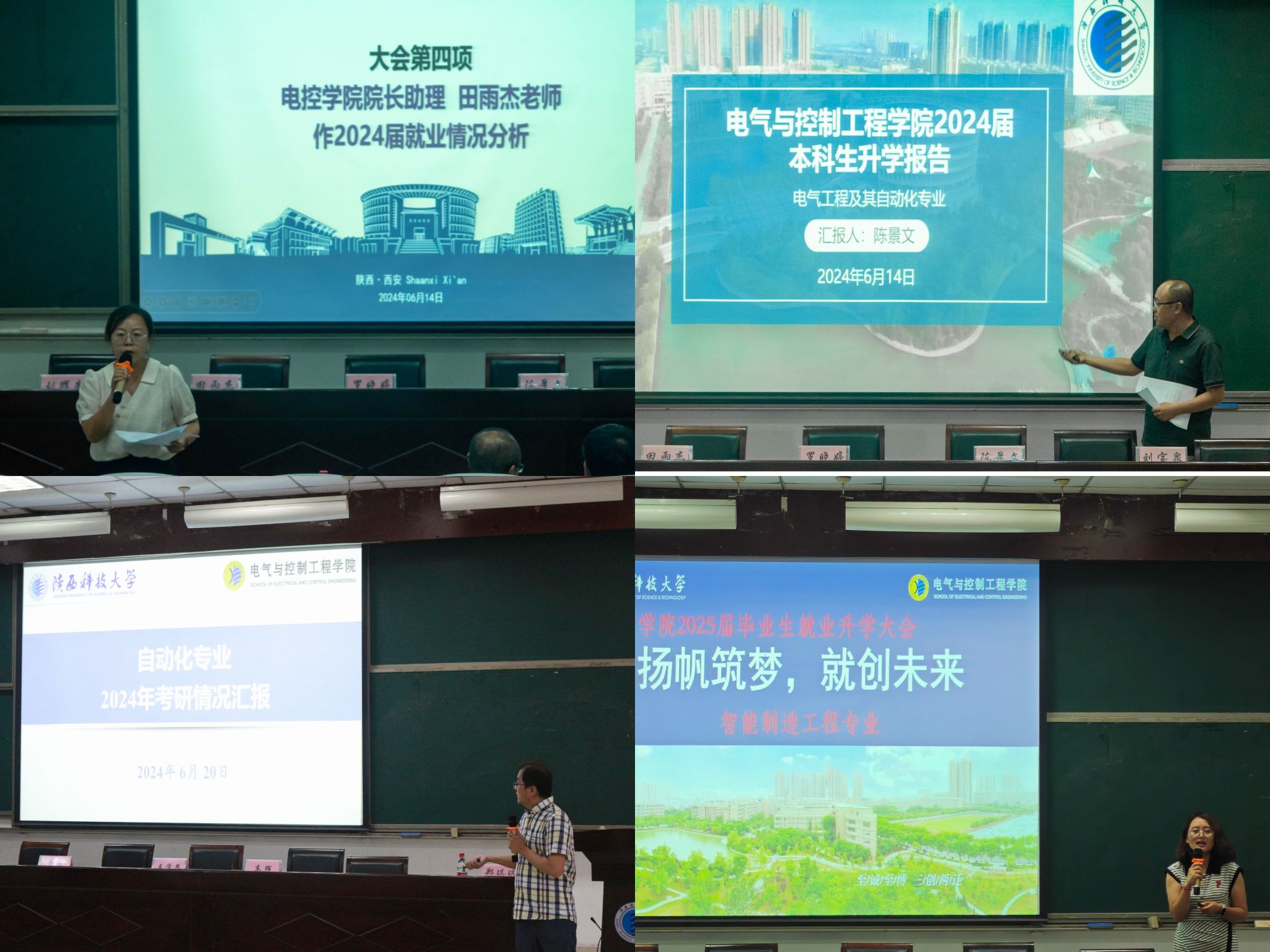 為全面落實(shí)學(xué)校就業(yè)工作部署,提前謀劃、扎實(shí)做好2025屆學(xué)生就業(yè)指導(dǎo)與服務(wù)工作,電氣與控制工程學(xué)院于6月14日、6月21日在三號(hào)教學(xué)樓101報(bào)告廳分專業(yè)舉行2025屆就業(yè)升學(xué)系列動(dòng)員大會(huì)。校學(xué)生就業(yè)指導(dǎo)中心就業(yè)創(chuàng)業(yè)指導(dǎo)部主任羅曉婷、電控學(xué)院院長助理田雨杰、電氣工程系主任陳景文、自動(dòng)化系主任王學(xué)恩、智能制造系主任曹曉倩,以及系部骨干教師代表出席會(huì)議,2024屆電氣優(yōu)秀學(xué)生代表及2025屆全體學(xué)生參會(huì),會(huì)議由輔導(dǎo)員鄭琪琪主持。