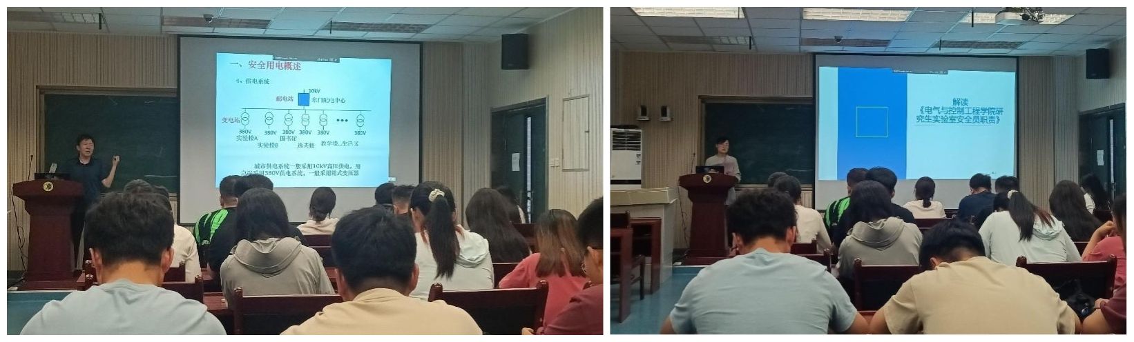 會上,學院分管研究生及實驗室工作院長助理楊南強調(diào)了設(shè)置實驗室安全員的重要意義,詳細解讀了《電氣與控制工程學院研究生實驗室安全員職責》,同時對全體研究生實驗室安全員提出了樹牢實驗室安全底線思維、極限思維,認真履職盡責的工作要求。學院研究生輔導員任歡對《陜西科技大學研究生實驗室安全管理細則(試行)》文件精神進行了介紹,明確指出實驗室“九不為”,目的是加強實驗室安全意識,規(guī)范實驗室安全管理,保障實驗室人員生命和財產(chǎn)安全。學院實驗室主任、校實驗室安全督導郝鵬飛作了題為《實驗室安全用電》的培訓,就安全用電知識、觸電、安全電壓標準、用電安全保護措施、電氣火災(zāi)及防范措施以及實驗室安全注意事項等六部分內(nèi)容進行詳細闡述。培訓全面解析了實驗室用電安全知識,提升了與會人員的實驗室用電知識儲備、安全意識以及應(yīng)急處理能力。