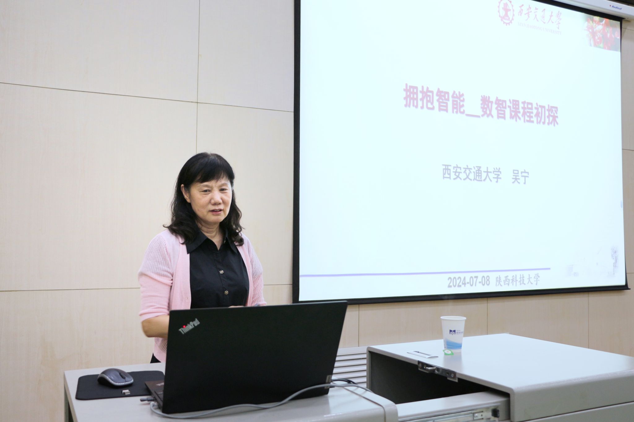 活動(dòng)分兩階段進(jìn)行,首先由西安交通大學(xué)吳寧教授作“擁抱智能——數(shù)智課程初探”專題報(bào)告。吳寧介紹了人工智能的概念源起、政策導(dǎo)向,對(duì)以“大語(yǔ)言模型”為代表的生成式AI技術(shù)進(jìn)行解讀。她以計(jì)算機(jī)基礎(chǔ)類課程為例,對(duì)該課程的個(gè)性化學(xué)習(xí)與評(píng)價(jià)體系進(jìn)行了全面解析,并分享了自己對(duì)于AIGC發(fā)展的思考與體會(huì)。