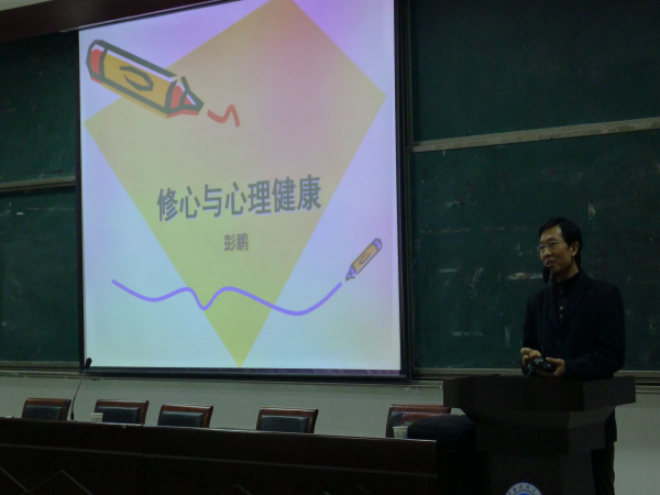 西北大學(xué)哲學(xué)與社會(huì)學(xué)學(xué)院副教授彭鵬作“修心與心理健康”講座
