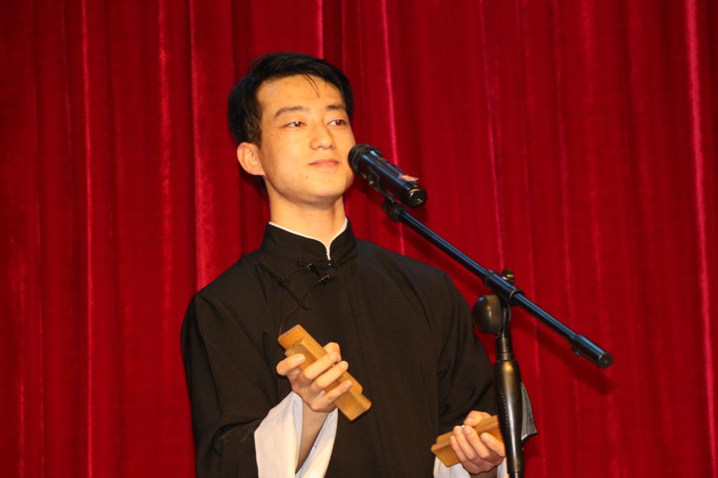 活動當天,現(xiàn)場人聲鼎沸,觀眾熱情高漲,未等開場就已座無虛席。15點20分表演一開始,首先上場的是青曲社的前輩王偉獨具特色的陜西快書《老候赴宴》,其手中張弛有度的四片竹板發(fā)出的“魔音”和耐人回味的陜西方言讓全場觀眾喝彩連連,現(xiàn)場氣氛一下子就達到高潮。隨后,作為東道主的我校同樂相聲協(xié)會的張?zhí)煨?、陳泱汲、李波、白園園等同學也帶來了《白蛇傳》、《這一天》、《當行論》等精彩表演。西工大樂翔相聲社、西電介四相聲社的熱情助演及我校魔術協(xié)會、熱舞社、武術協(xié)會的傾情加盟更使得現(xiàn)場陣陣沸騰、叫好不斷。此次活動還加入了現(xiàn)場微信平臺的互動環(huán)節(jié),從開場起,舞臺兩邊的大屏幕就在時時顯示觀眾們的觀看感受,時而出現(xiàn)觀眾們鸚鵡學舌臺上的經(jīng)典臺詞,時而有社團或組織發(fā)來的賀電,更有向臺上的表演者索求電話號碼,其熱烈鮮活著實讓現(xiàn)場氣氛活躍異常。觀演期間還伴有抽獎,即在微信平臺上隨機抽取五名幸運觀眾獲贈青曲社門票一張,這也讓現(xiàn)場的微信平臺更加火爆。