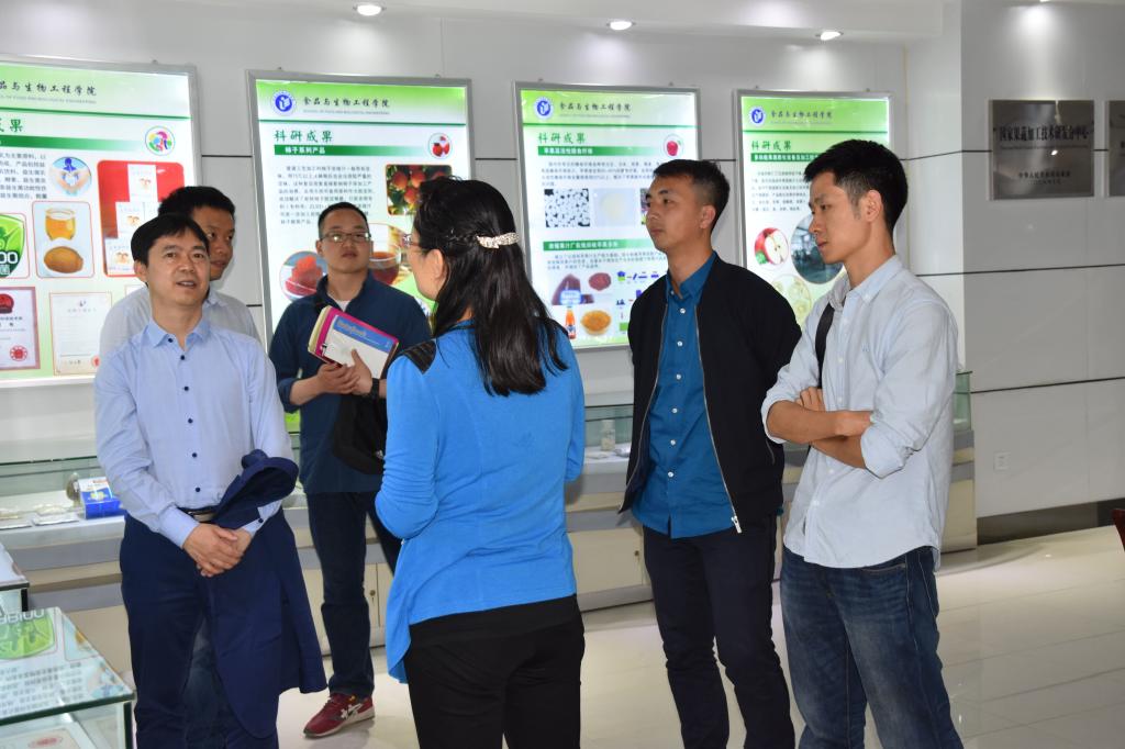科技處、前沿院、校友總會(huì)負(fù)責(zé)同志分別介紹了相關(guān)情況。材料學(xué)院和食品學(xué)院專家分別就相應(yīng)的洽談項(xiàng)目提出了初步實(shí)施方案,并達(dá)成項(xiàng)目合作意向。隨后,茅臺(tái)集團(tuán)一行5人參觀了材料學(xué)院和食品學(xué)院相關(guān)實(shí)驗(yàn)室。