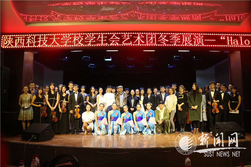 近日,由校團(tuán)委主辦,學(xué)生會(huì)藝術(shù)團(tuán)承辦的“陜西科技大學(xué)2016年大學(xué)生藝術(shù)團(tuán)冬季展演——HALO”在大學(xué)生活動(dòng)中心成功舉辦。本次展演以“多彩青春,筑夢(mèng)科大”為主題,是由我校大學(xué)生藝術(shù)團(tuán)的話(huà)劇團(tuán)、民舞隊(duì)、拉丁舞隊(duì)、街舞隊(duì)、聲樂(lè)隊(duì)、管弦樂(lè)團(tuán)、模特禮儀隊(duì)七支表演隊(duì)伍舉辦的聯(lián)合展演。演出當(dāng)晚,藝術(shù)團(tuán)精心組織編排的節(jié)目為我校師生們帶來(lái)了一場(chǎng)視聽(tīng)盛宴。