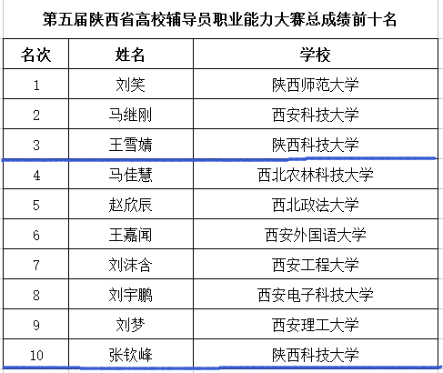 3月30日至3月31日,陜西省第五屆高校輔導(dǎo)員職業(yè)能力大賽在西北大學(xué)舉行,來自全省94所高校(含獨(dú)立學(xué)院)的130名輔導(dǎo)員參加了比賽。我校設(shè)計與藝術(shù)學(xué)院輔導(dǎo)員王雪婧、經(jīng)濟(jì)與管理學(xué)院輔導(dǎo)員張欽峰憑借扎實(shí)的基本功、良好的表現(xiàn)力,在比賽中發(fā)揮出色,雙雙榮獲一等獎,這是自賽事開展以來我校連續(xù)四次蟬聯(lián)全省最好成績,并再次榮獲“優(yōu)秀組織獎”。