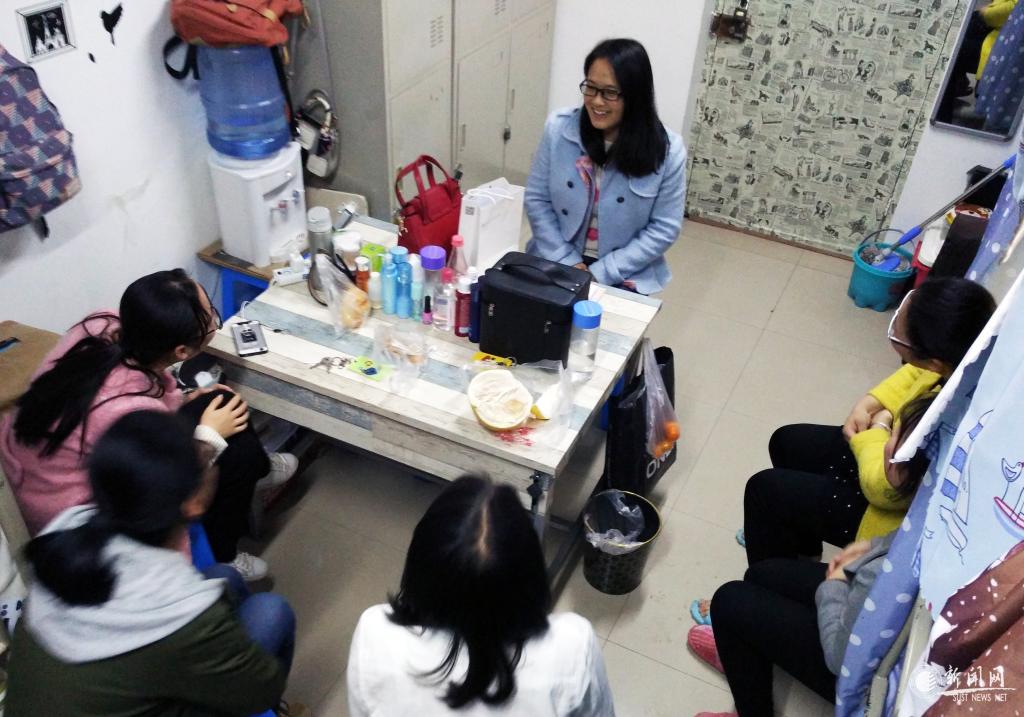 王佳瑜老師(左)和學(xué)生談心