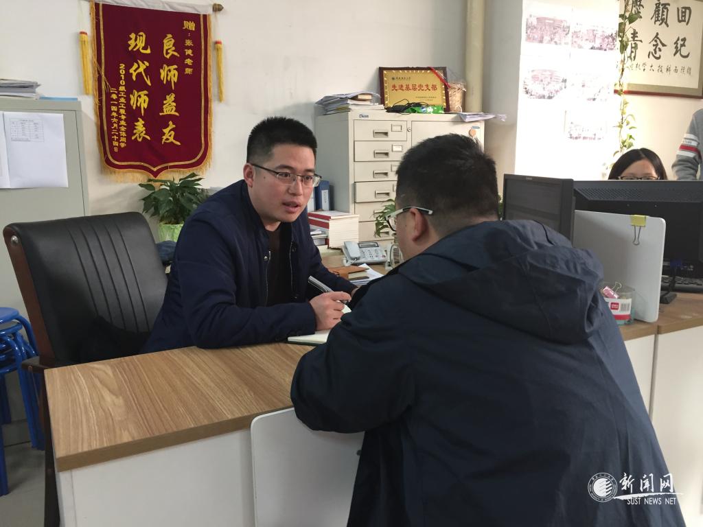 郝建武老師(中)和學(xué)生談心