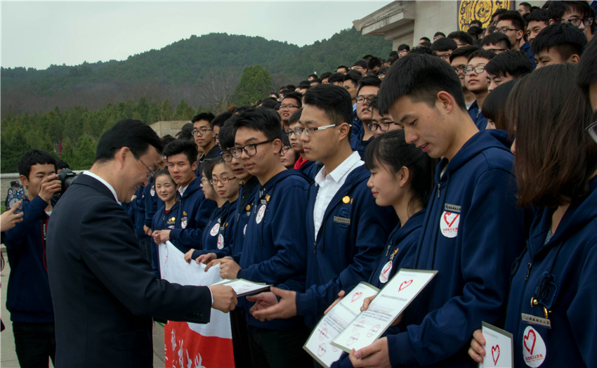 團(tuán)省委書記段小龍為志愿者頒發(fā)證書