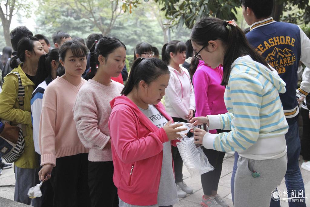 分鏡頭1:在測試場地門口,大三年級某班長正在給同學(xué)們分發(fā)測試肺活量的吹嘴。提到體能測試活動,他說,“大三年級的同學(xué)普遍比較重視這次體能測試,提前幾天就在操場進行練習(xí),當(dāng)天早上一大清早就換好運動裝,排隊來到測試地點,以便能夠取得好成績?!?br />