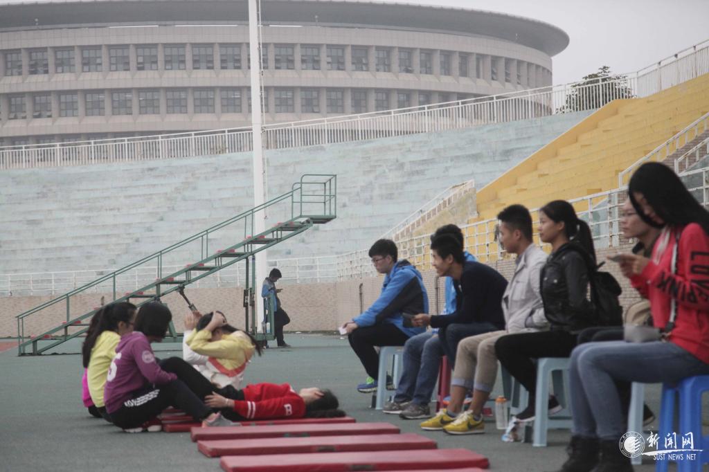 學(xué)生參加測試為了什么?徐廣華說,“最大的問題是學(xué)生不太理解體能測試的目的和意義,缺乏認真對待體測考試的態(tài)度,不重視鍛煉,甚至覺得這些無所謂?!庇浾呖吹讲賵錾喜环Υ┲o身牛仔褲、皮鞋來參加測試的學(xué)生。除此之外,還有的學(xué)生在跑步過程中作弊,從跑到中間的足球場穿過去。為了避免這種現(xiàn)象,今年測試組的老師們特意在跑道的轉(zhuǎn)彎處設(shè)置了護欄。
