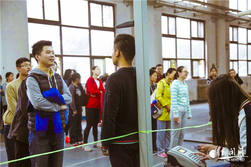 一年一度的“體測季”又開始了。大三、大四年級體測將要陸續(xù)在10月的周六周日舉行。大一、大二年級體測也將在十月份的體育課上進行。測試的項目有身高、體重、肺活量、立定跳遠、坐位體前屈、50米短跑、引體向上(男生)、1000米長跑(男生)、仰臥起坐(女生)、800米長跑(女生)。下面,讓我們隨著鏡頭來看看這次體測的情況吧。標準田徑場外公布了體測的項目以及達標要求進行肺活量測試的班級正在分發(fā)吹嘴在田徑場東看臺下進行的肺活量測試身高體重測量坐位體前屈測試在標準田徑場進行的立定跳遠測試男子1000米測試