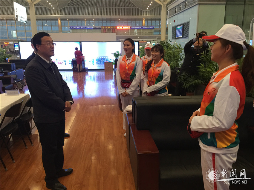 在第十一屆中國藝術(shù)節(jié)即將開幕之際,共青團陜西省委書記、第十一屆中國藝術(shù)節(jié)陜西省工作指揮部志愿者工作部部長段小龍,陜西廣播電視臺副臺長、黨委副書記安平,共青團陜西省委志愿者工作部副部長胡曉彤等一行于10月13日下午來到西安咸陽國際機場、西安北客站,慰問我校正在此地進行現(xiàn)場服務(wù)的127名大學(xué)生志愿者。