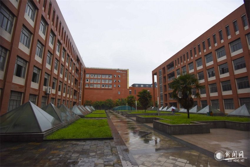 在一號教學樓的每兩棟樓之間也有著極為雅致的風景,同時這里也與科大湖畔一起,聆聽著早起學子朗朗的讀書聲。