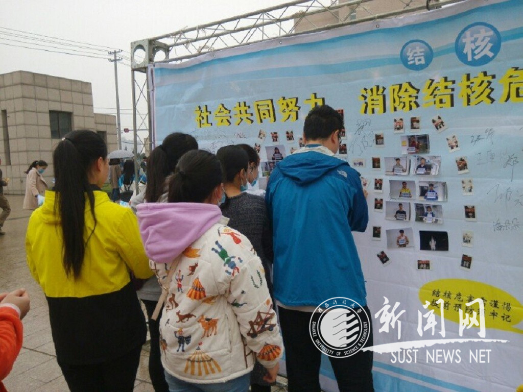 活動(dòng)前,匯海醫(yī)療隊(duì)志愿者現(xiàn)場(chǎng)為經(jīng)過(guò)的師生發(fā)放宣傳材料及口罩,聯(lián)系沁園餐廳滾動(dòng)播放動(dòng)漫宣傳片,以展板上簽名、手持標(biāo)語(yǔ)互動(dòng)拍照等多種形式向同學(xué)們介紹如何防治結(jié)核病,宣傳結(jié)核病診斷、治療的知識(shí)和相關(guān)政策。