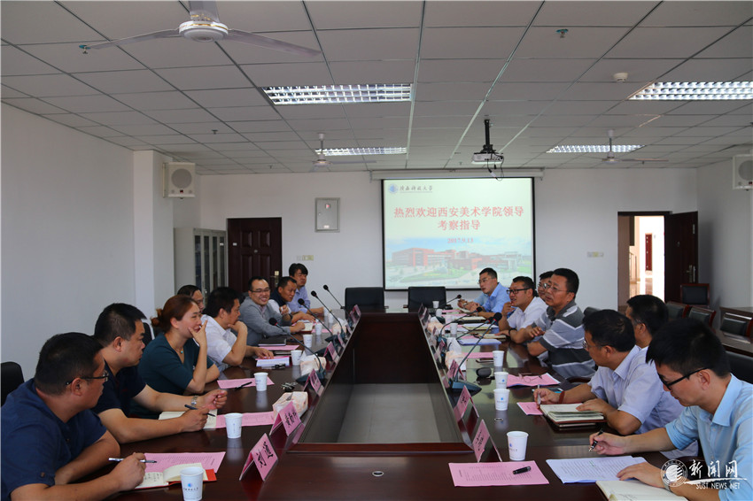 西安美術(shù)學(xué)院副院長李四軍及總務(wù)處、招生就業(yè)處、學(xué)工部、團(tuán)委等部門主要負(fù)責(zé)人一行8人9月13日上午來我校考察交流后勤社會化改革、學(xué)生管理、招生等工作。校黨委副書記溫鋒、學(xué)工部、團(tuán)委、后勤服務(wù)集團(tuán)、招生辦相關(guān)負(fù)責(zé)人參加交流座談,會議由學(xué)工部部長楊建主持。